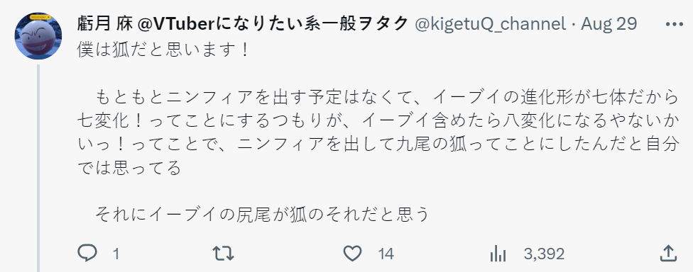 近日日本 X 上就有網友分享這樣的圖片,指稱最多對於伊布的解釋,分成三種門派 : 狗、貓與狐狸的派別,其實各種說法都有其原因,甚至也有人認為伊布應該是兔子,也讓「伊布」的動物說真的是眾說紛紜。
