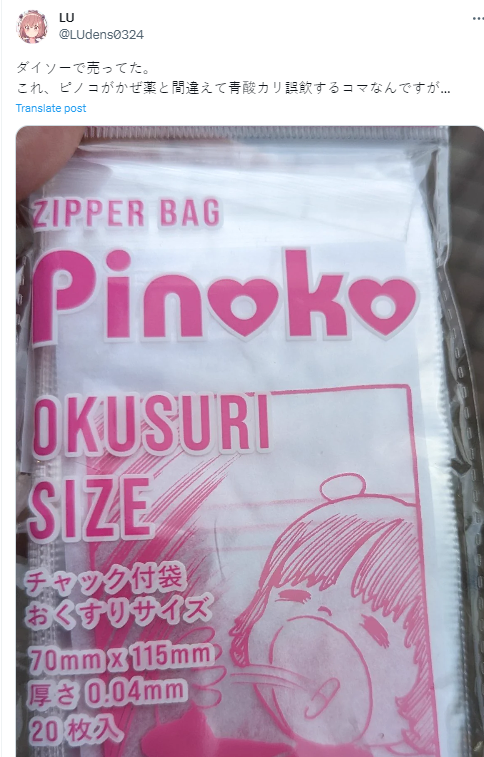 由於不少粉絲提到這個劇情典故,後續大創也自行表示這次聯名商品是希望使用原作漫畫的插圖,並透過生活用品的對應來製作。像這款「皮諾克夾鏈袋」設計大小就是用來讓人放置藥品,所以選擇了皮諾可吞下藥丸的場景。