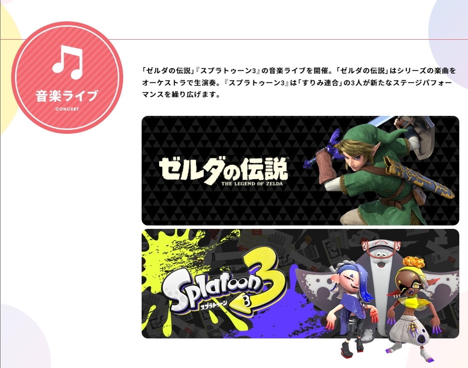 除了至今依然活躍的《斯普拉遁 3》與《瑪利歐賽車 8 豪華版》,將在此次活動展開精彩刺激的「世界冠軍賽 2024」之外,在音樂表演方面,也包含了《薩爾達傳說》管弦樂團現場演出,以及《斯普拉遁 3》「魚漿幫」的舞台表演。