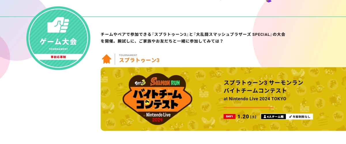 當然,一向少不了的「遊戲大會」,也將會盛大舉行《斯普拉遁 3》鮭魚跑打工團隊賽,與《任天堂明星大亂鬥 特別版》最強搭檔賽,不過這部分則是採取事前預約制,想要參與本次活動的玩家們,可要特別留意了!