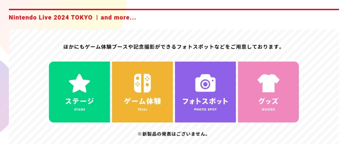 除了上述的活動行程外,在「Nintendo Live 2024 TOKYO」這兩天也會安排各種表演活動、遊戲體驗、拍照打卡與產品周邊等,不過在活動當天並不會發表任何新作情報。