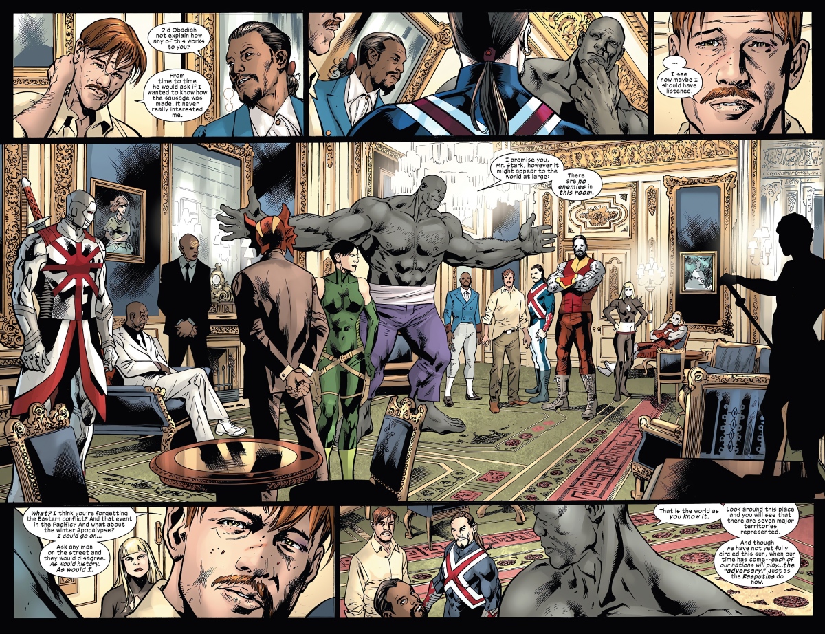 從這邊開始,就是編劇Hickman最喜歡做的事情了。他在創作一個全新世界的時候很喜歡直接先把所有勢力分布圖全部曬出來給讀者看。