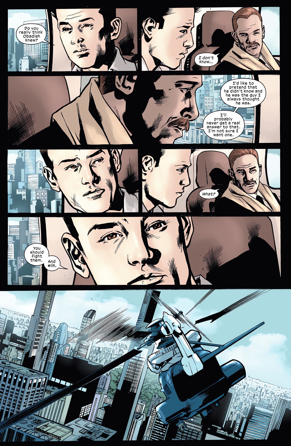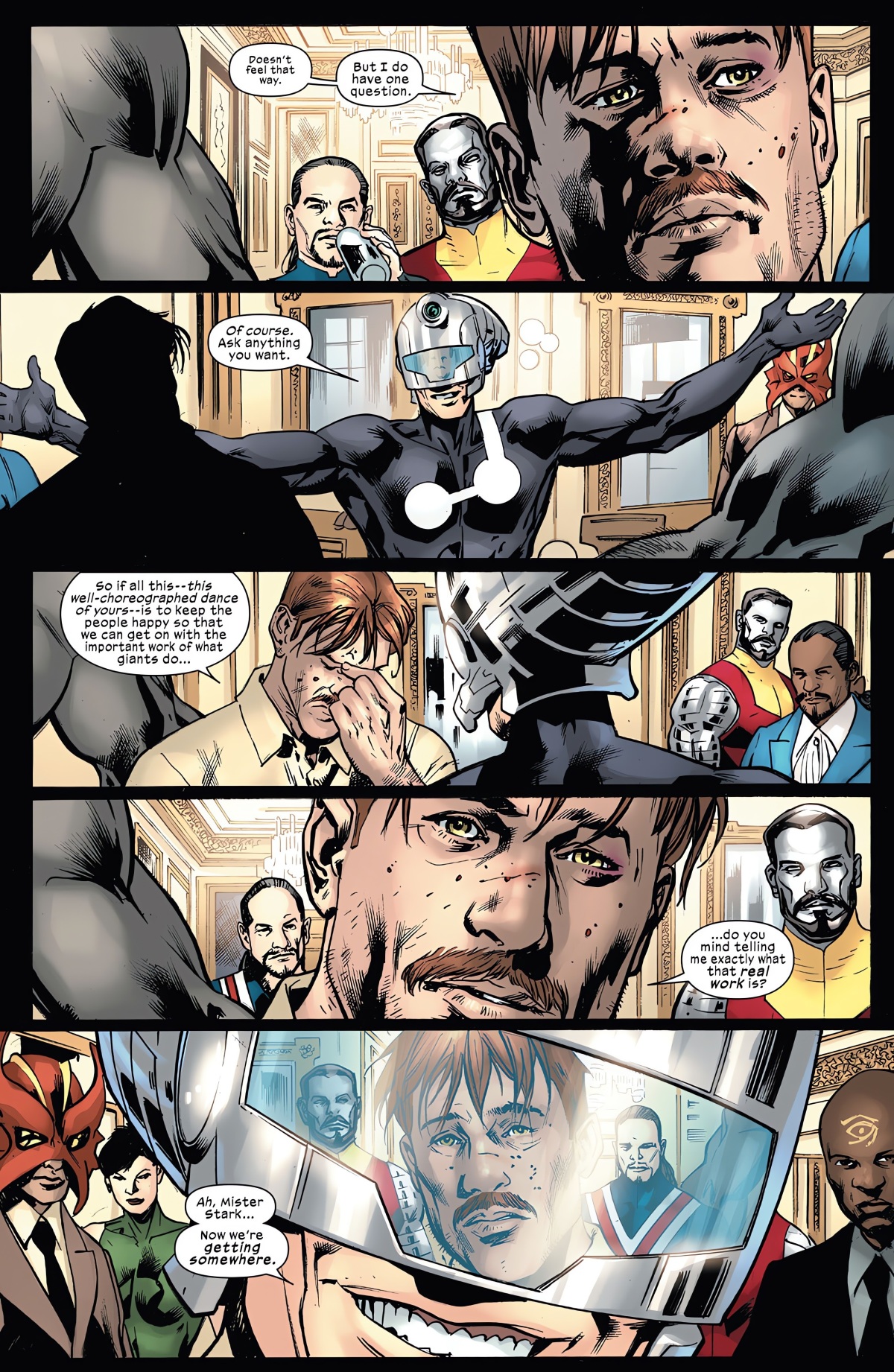 而在這一期當中,在史坦的喪禮過後,霍華的兒子東尼‧史塔克總算向他的父親問出了兩天前在拉脫維亞到底發生了什麼事情?當時的所有影像全部被截斷,全世界都沒看見那裡到底發生了什麼。