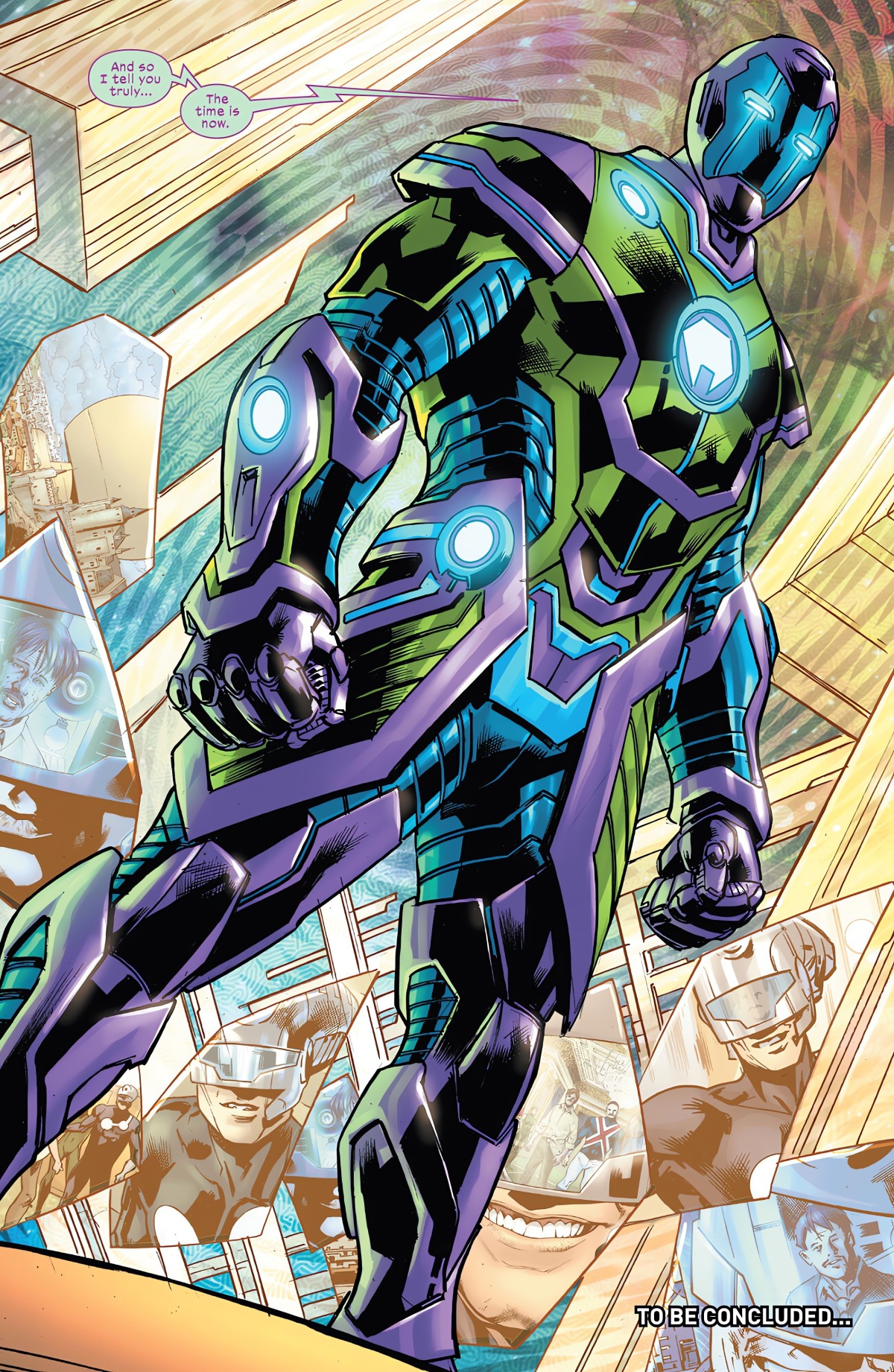上一回,「造物主(The Maker)」本來要將他的「明日之城」展示給全世界,卻被來自未來的終極戰隊(Ultimates)複製大軍給阻擾;新終極宇宙的「鋼鐵人」霍華‧史塔克的夥伴奧比戴亞‧史坦在戰鬥中身亡,霍華則被造物主帶走,後者更向他展示了自己的秘密:造物主一直在利用「永生者引擎(Immortus Engine)」去照他的想法來修改時間線,對方也是因此而來,而這已經不是第一次的襲擊,他身受重傷,引擎也遭到損壞;除此之外,他更推測這個引擎的創造者正是未來的霍華,才將他帶到這裡。