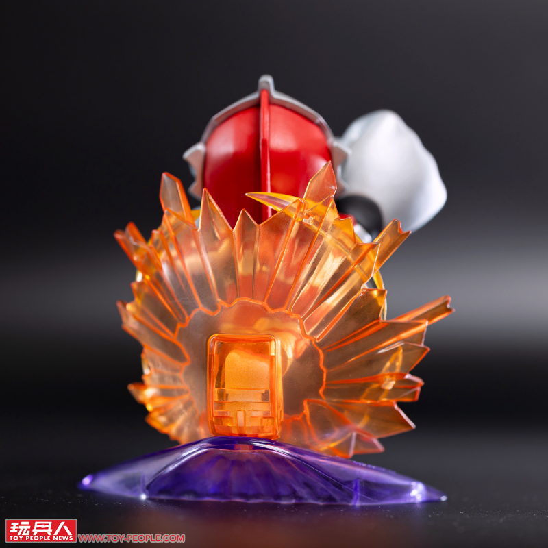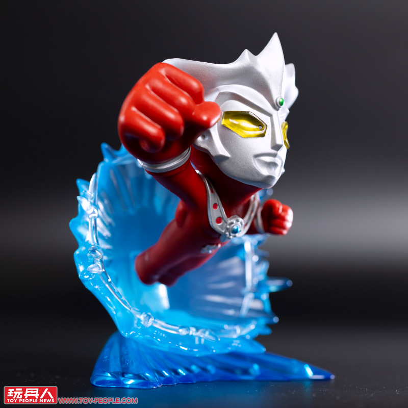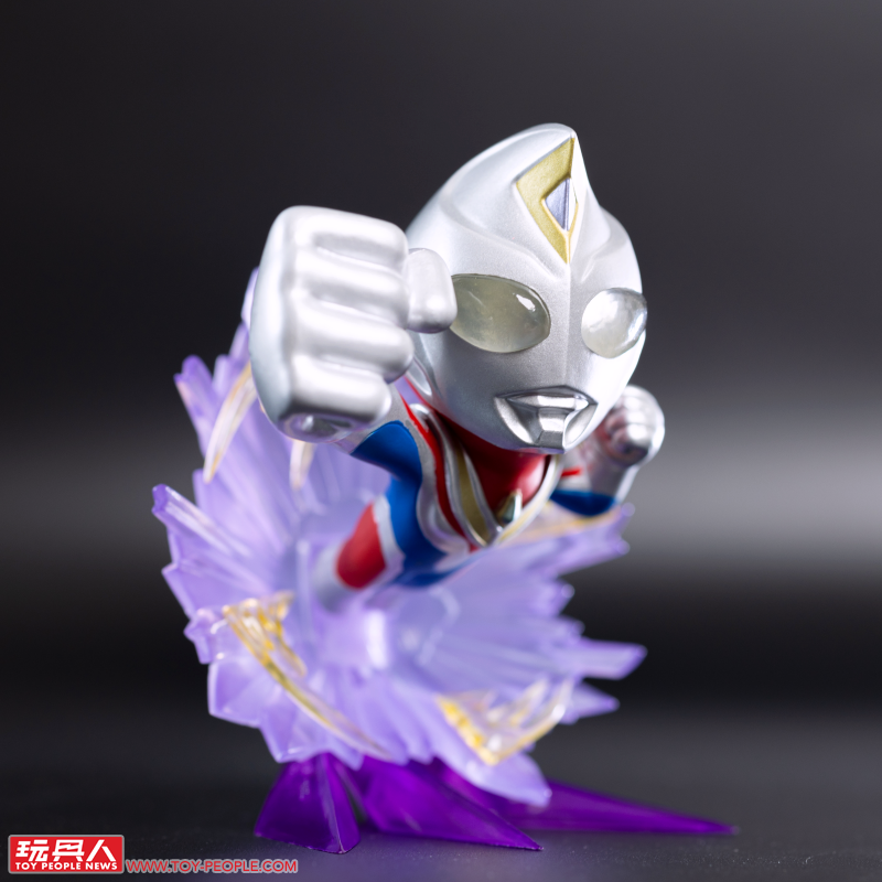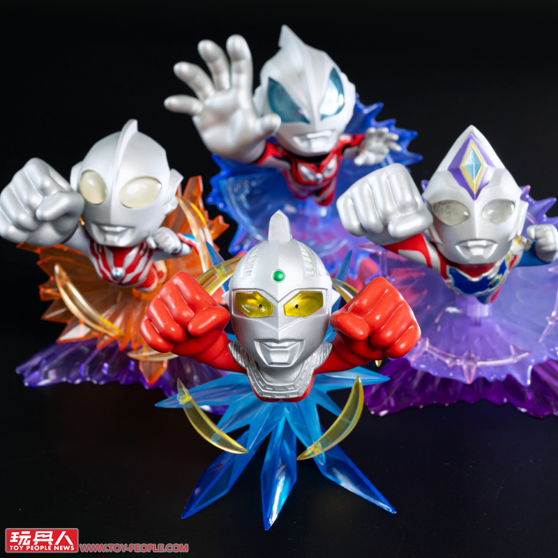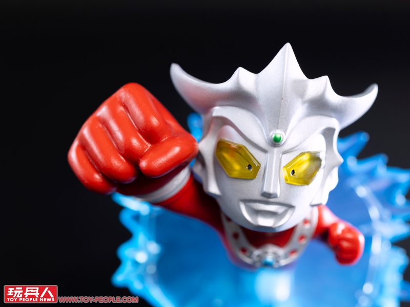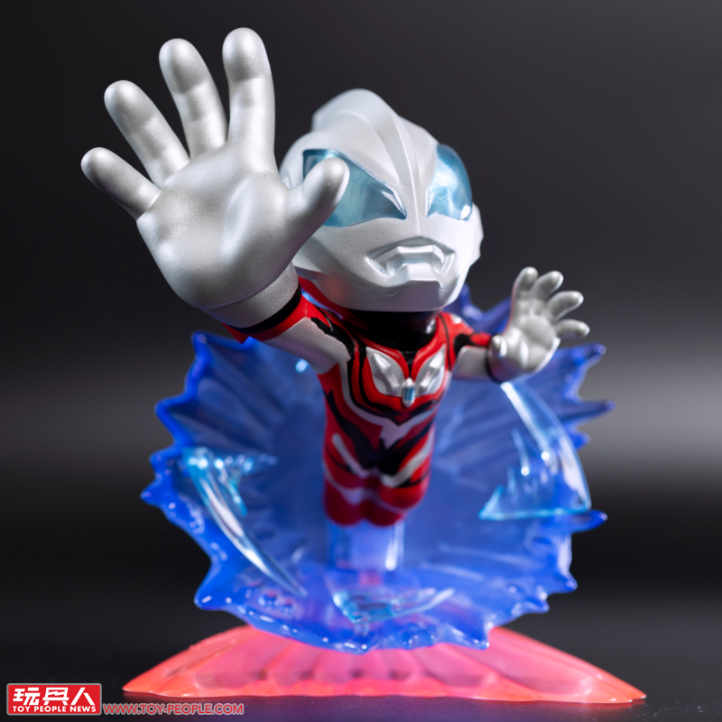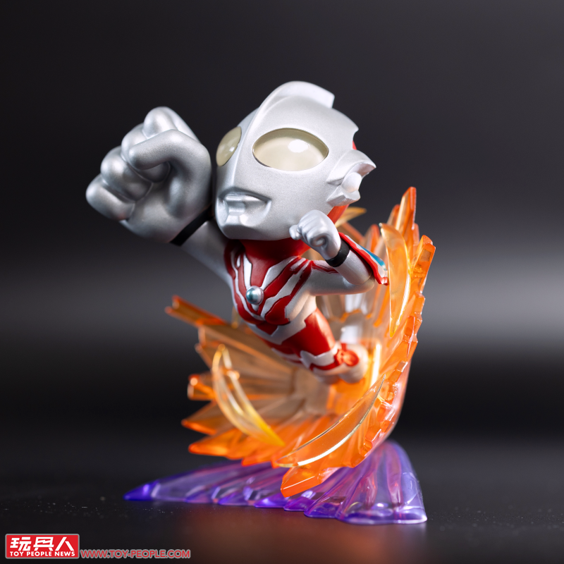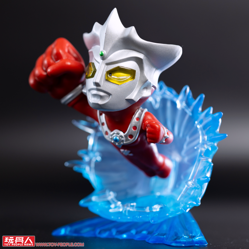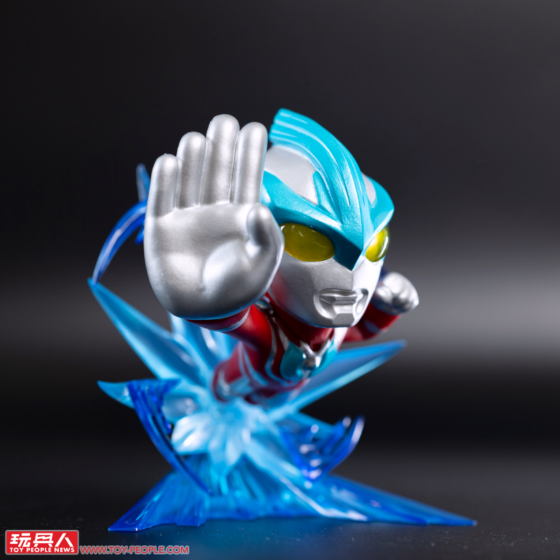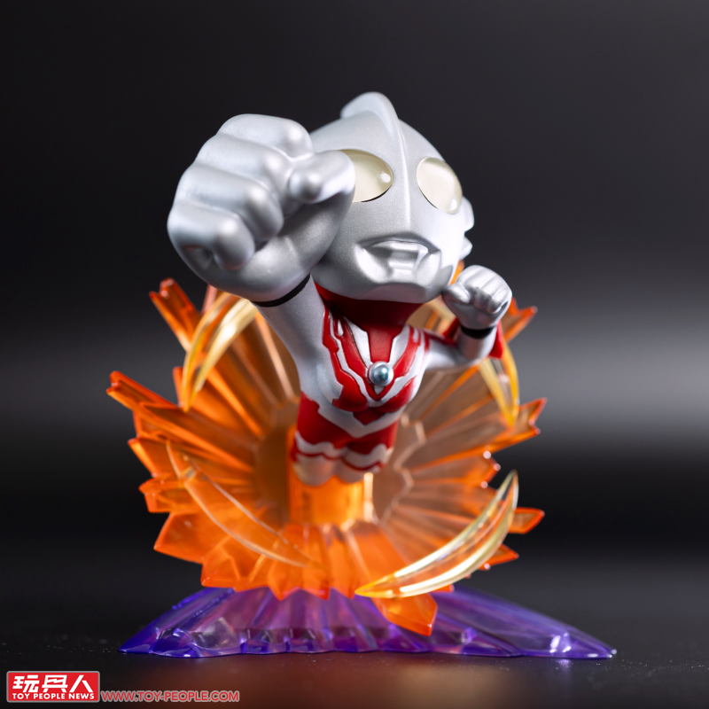 這次盒玩的規格大約落在 10 公分左右,並在這個精巧的尺寸中以透視感造型的力霸王本體、輔助搭配的特效件達成躍動感十足的變身瞬間,除了考究刻畫出每一位力霸王的造型細節之外,也因應每一位角色的特性做出了姿勢的差異,比方說超人七號是唯一舉起雙手的力霸王、握拳與張開手掌的不同......等,特效件部分則是在固定的造型中作出多種排列組合,增添整體的變化性;小編個人認為從上方 45° 往下看基本上會是最好的角度。