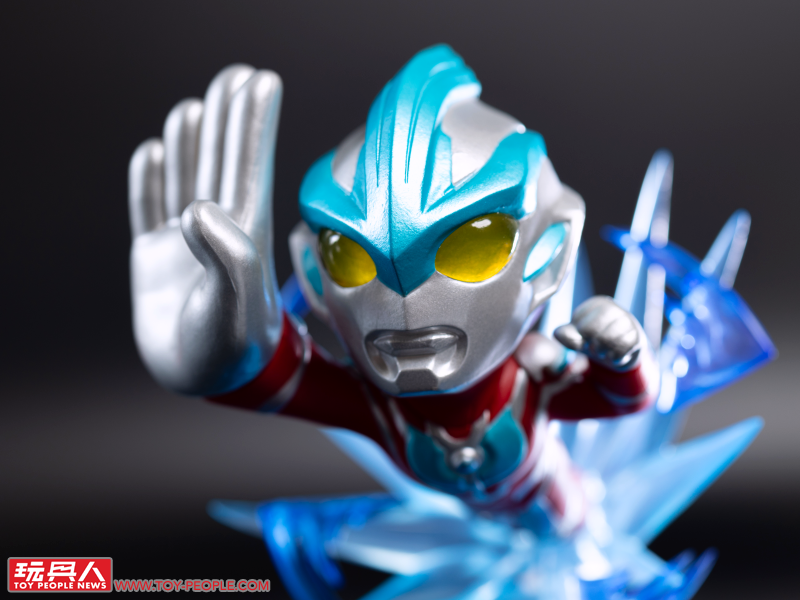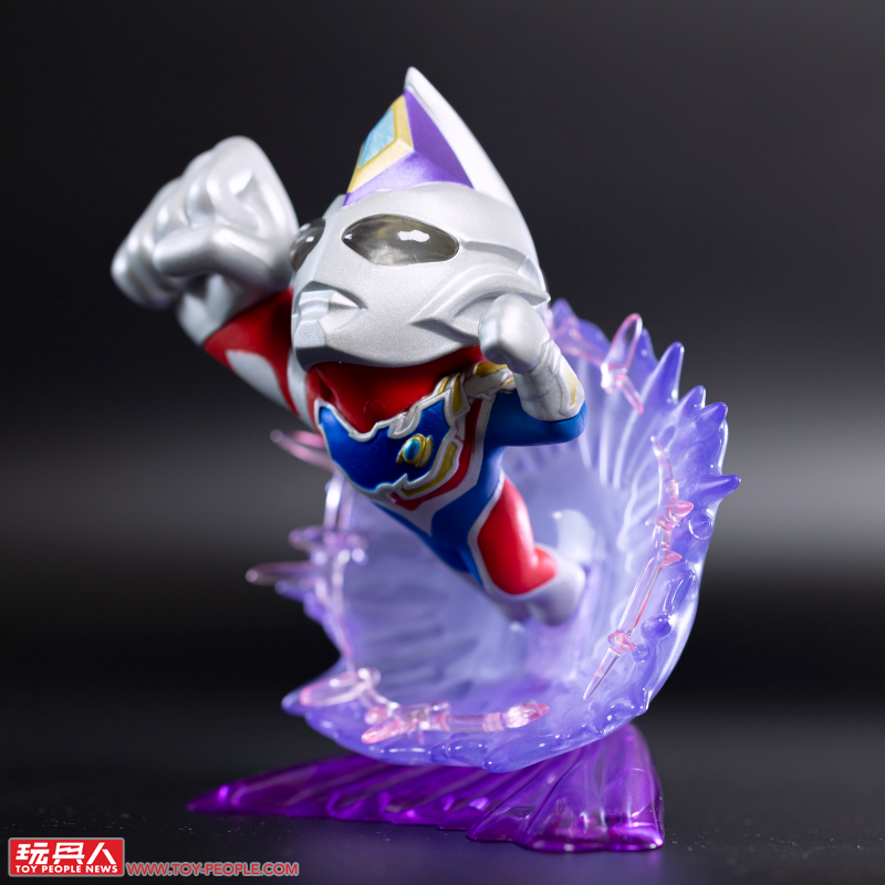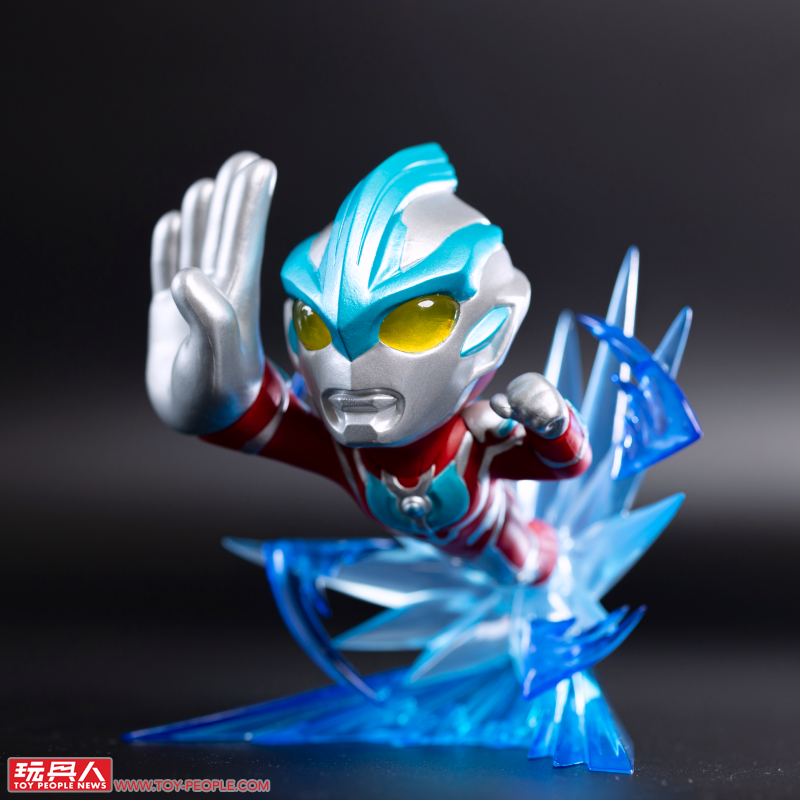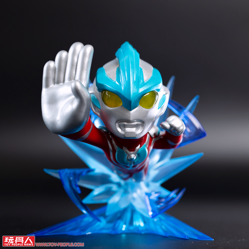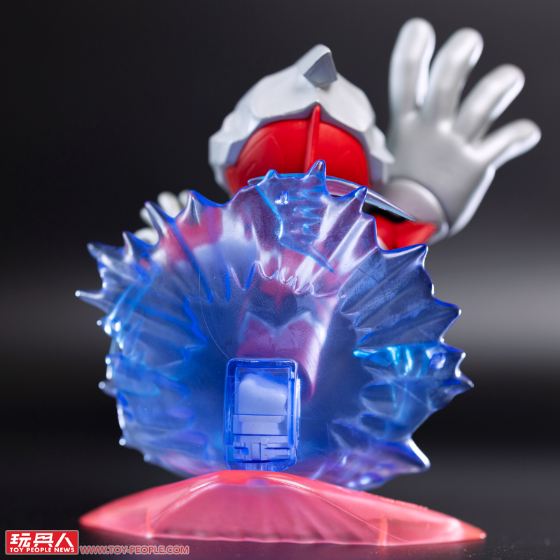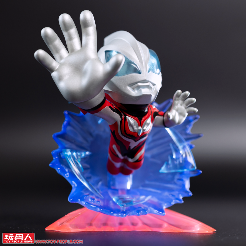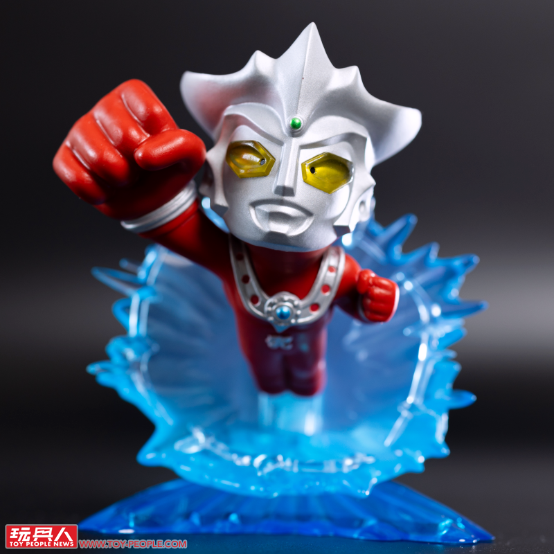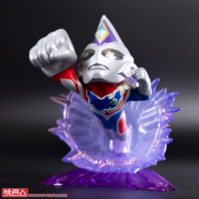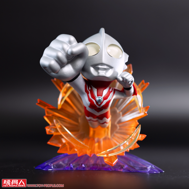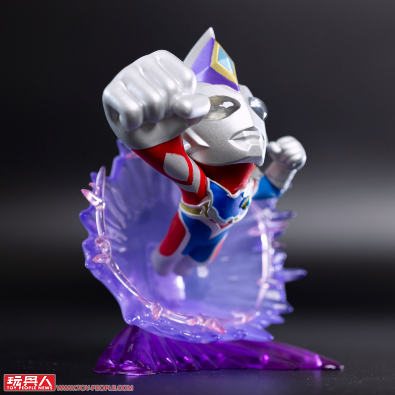 這次盒玩的規格大約落在 10 公分左右,並在這個精巧的尺寸中以透視感造型的力霸王本體、輔助搭配的特效件達成躍動感十足的變身瞬間,除了考究刻畫出每一位力霸王的造型細節之外,也因應每一位角色的特性做出了姿勢的差異,比方說超人七號是唯一舉起雙手的力霸王、握拳與張開手掌的不同......等,特效件部分則是在固定的造型中作出多種排列組合,增添整體的變化性;小編個人認為從上方 45° 往下看基本上會是最好的角度。