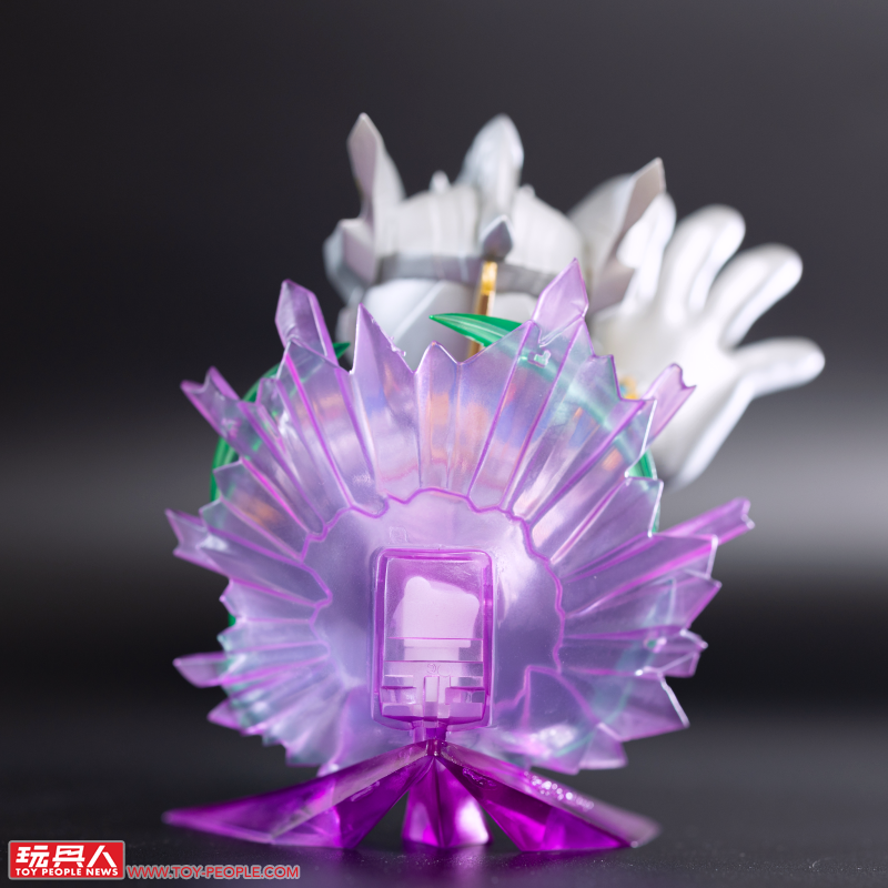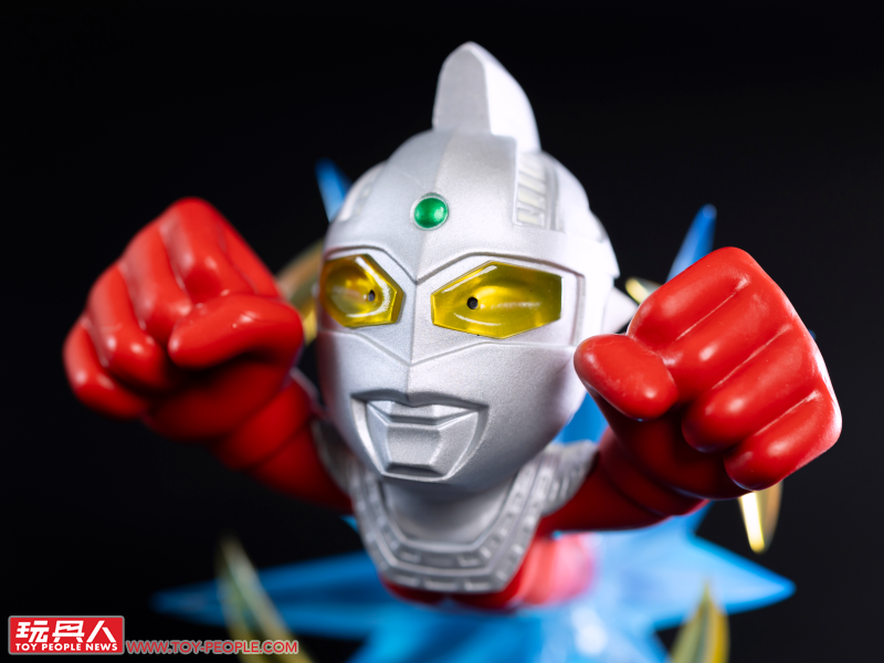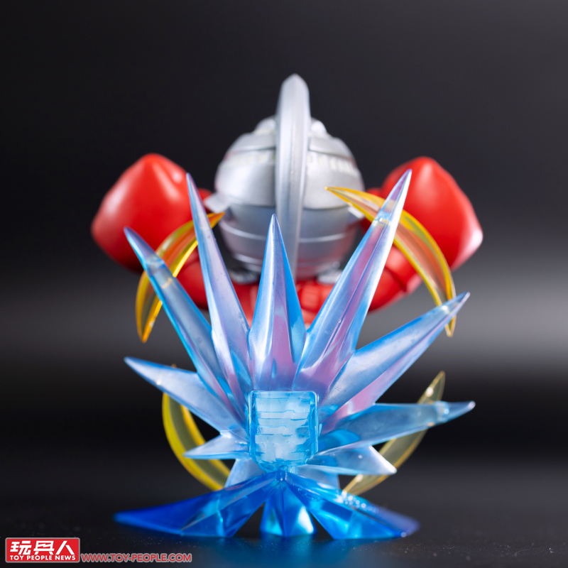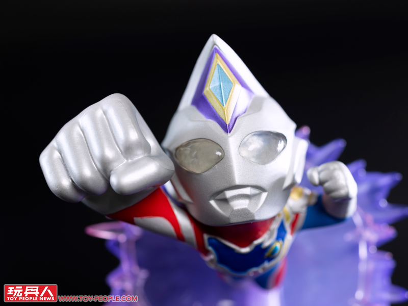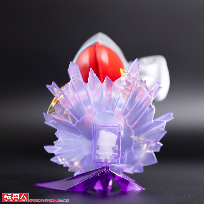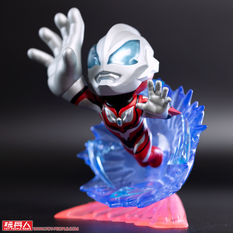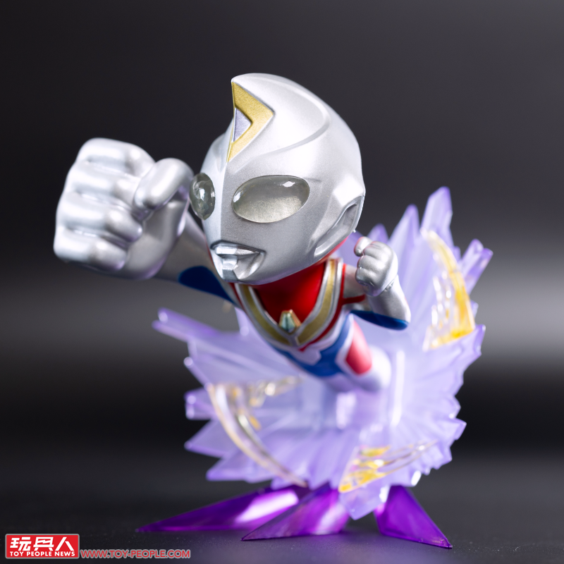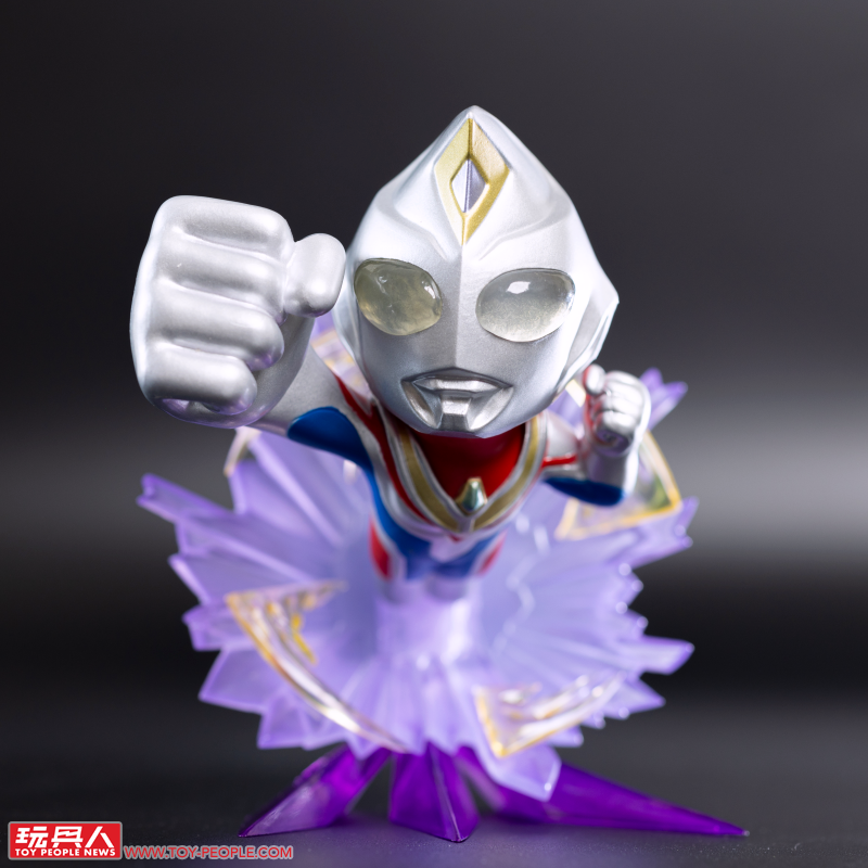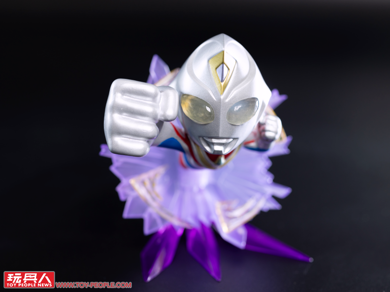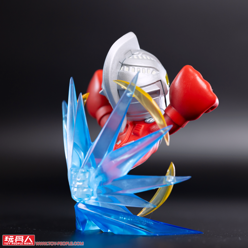 這次盒玩的規格大約落在 10 公分左右,並在這個精巧的尺寸中以透視感造型的力霸王本體、輔助搭配的特效件達成躍動感十足的變身瞬間,除了考究刻畫出每一位力霸王的造型細節之外,也因應每一位角色的特性做出了姿勢的差異,比方說超人七號是唯一舉起雙手的力霸王、握拳與張開手掌的不同......等,特效件部分則是在固定的造型中作出多種排列組合,增添整體的變化性;小編個人認為從上方 45° 往下看基本上會是最好的角度。