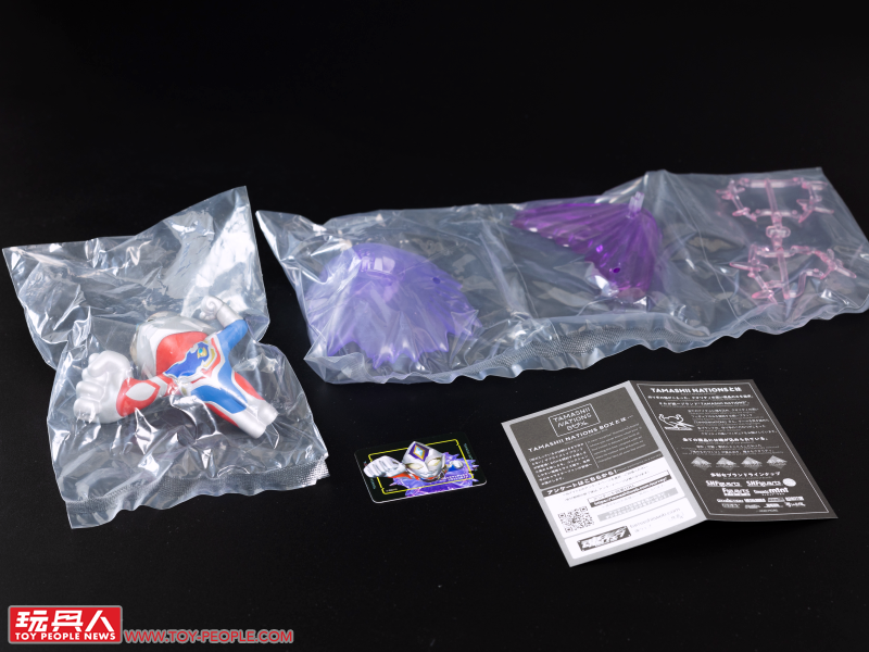 ▼ 內容物包含 SD 比例的超人力霸王本體、底座與特效零件、角色卡片,以及關於 TAMASHII NATIONS 的介紹小卡。