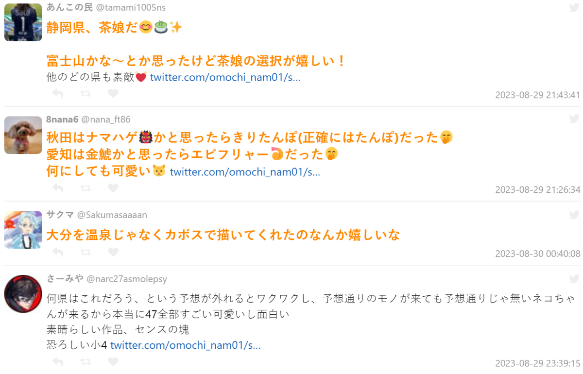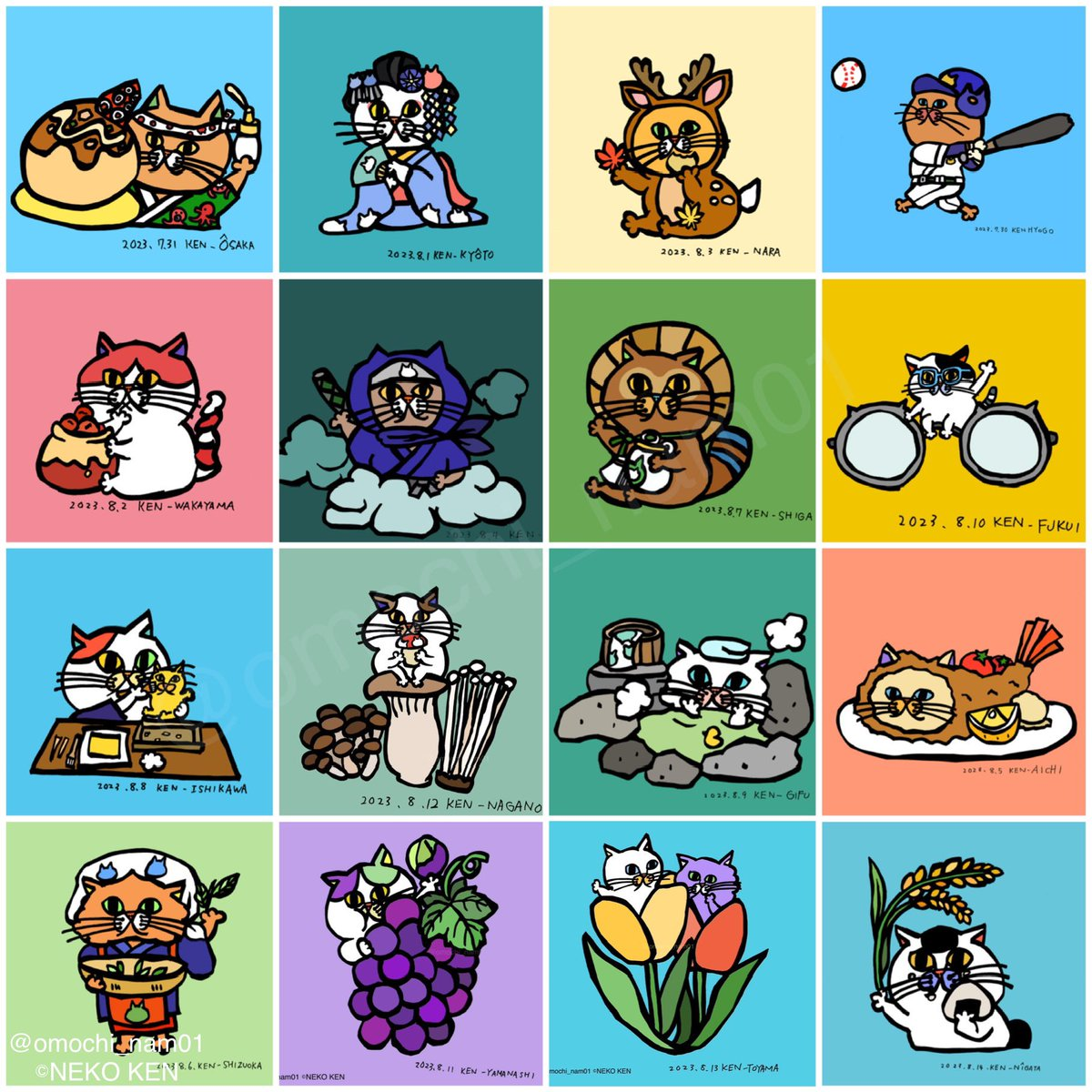 最近也是日本「夏季休業」的結束期間,有位推主媽咪なみそ( @omochi_nam01 ) 分享了自己小四的兒子在休假期間繪製的「日本47個都道府縣貓咪」插圖,超萌可愛的造型搭配各地特色的成品,吸引不少網友關注,不少人不敢置信這是 10 歲小孩的創作。