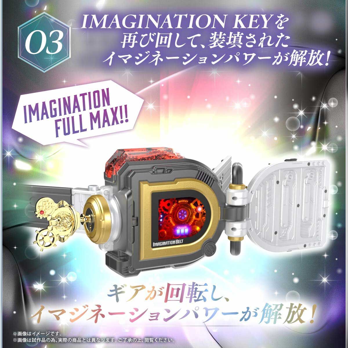 「Disney IMAGINATION BELT」運用了萬代長年製作《假面騎士》變身腰帶的豐富經驗與技術,以承載夢想與實現豐富想像為主題,製作出融合眾多迪士尼代表角色與日本特攝英雄的嶄新世界。