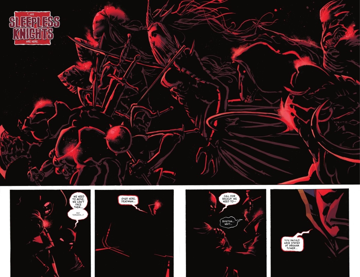 雖然失眠因為力量不足而回到惡夢境之中,但是他的惡夢造物「無眠騎士團(Sleepless Knights)」可不受影響,能夠繼續在現實世界中活動,而他們現在也知道死人和睡魔在這裡了!