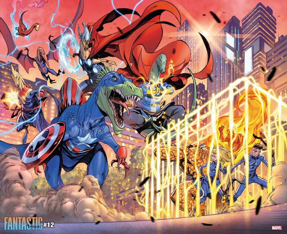 只不過這一次,要輪到他們的對家漫威漫畫來搞這一齣啦。沒錯,由Ryan North和Iban Coello創作的10月份的《驚奇四超人》第12期,漫威第一家庭將會神祕地被送到所有人都是恐龍的平行宇宙去,而恐龍版驚奇四超人則會作為交換被送來正史宇宙;而這四人必須在足以摧毀兩個地球的危機爆發前在恐龍地球上生存下去。