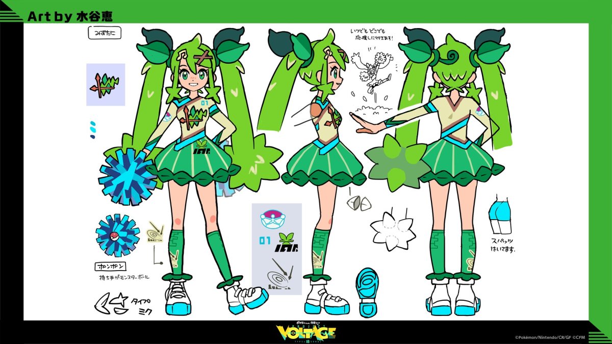 此次的「Project Voltage」第二彈設計圖,是由名為水谷恵(@megtany)的繪師所設計的,可以看到初音標誌性的雙馬尾,不僅被染成吻合草屬性元素的草綠色,在馬尾末端還有著跟轟擂金剛猩毛髮相似的造型,讓整體的搭檔更有一致性。