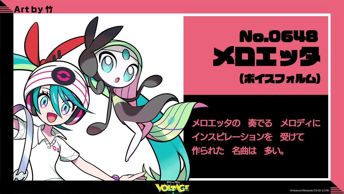 如圖所見,可以看到此次第一彈公開的寶可夢搭檔,是能夠唱出美妙歌聲,並且自由操控聽眾情緒的一般系/超能力寶可夢「美洛耶塔」,而與牠牠搭檔的初音所穿戴服裝配件不僅都與寶可夢有關,所代表的屬性也與美洛耶塔一樣,屬於「超能力」。