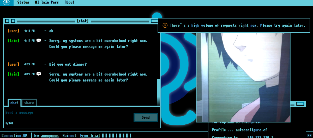 今日 ( 9/5 ) 官方 X 宣布,推出了讓人能與動畫女主角「岩倉玲音」互動對話型線上服務「AI lain」,讓你可以在網路上跟其對話,就像動畫裡面的感受一樣,而 所提供 AI 系統會藉由學習給出不同回應,也會感受到她的成長。