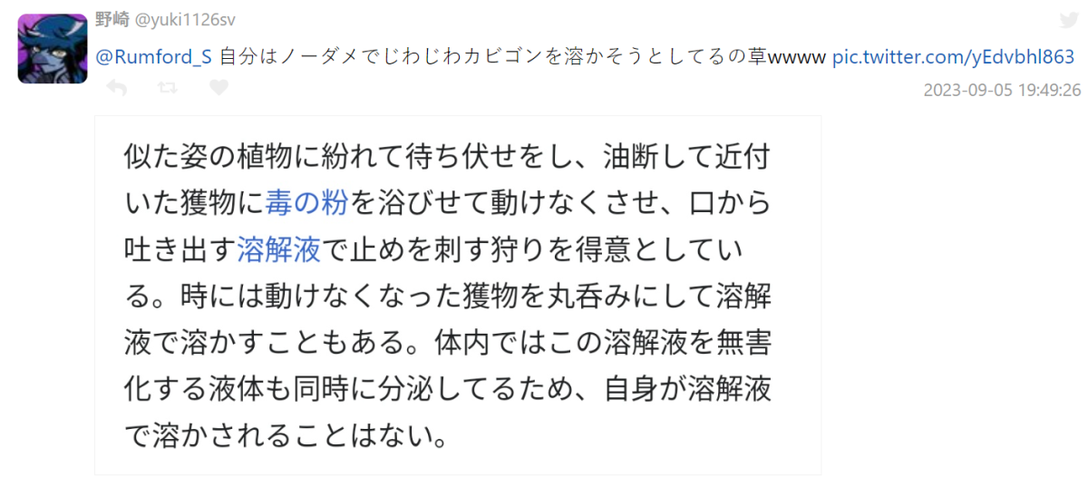 不過最近在日本 X 上有推主分享,睡眠成果之中發現了口呆花的「大肚睡姿」,雖然構圖很可愛,但發現口呆花睡著流出了溶解液在卡比獸肚子上,覺得替卡比獸抱委屈,這樣的觀點也成為 X 的話題之一。