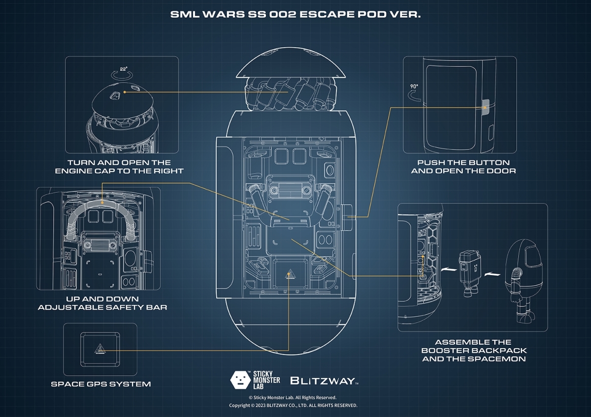 旗下作品在全球都享有超高人氣的韓國設計師玩具品牌「黏黏怪物研究所 (Sticky Monster Lab) 」與韓國知名收藏品牌 Blitzway 在 2021 年攜手打造出「SML WARS SS 001 太空船」之後,今(6)日再度發表令人又驚又喜的續作「SML WARS 002 逃生艙 (Escape Pod) 」!現正於 Blitzway 官網開放預訂,預計 2023 年第四季開始發貨。