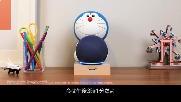 Alexa 新功能「哆啦A夢報時」,則是只要說「Alexa,打開哆啦A夢報時」,哆啦A夢(CV:水田山葵)會喊出聲音告訴你時間。若你還另外購買哆啦A夢支架,除了報時之外,還可以額外聽到 30 多種支援語音,讓你的居家生活彷彿真的有哆啦A夢相陪一樣!