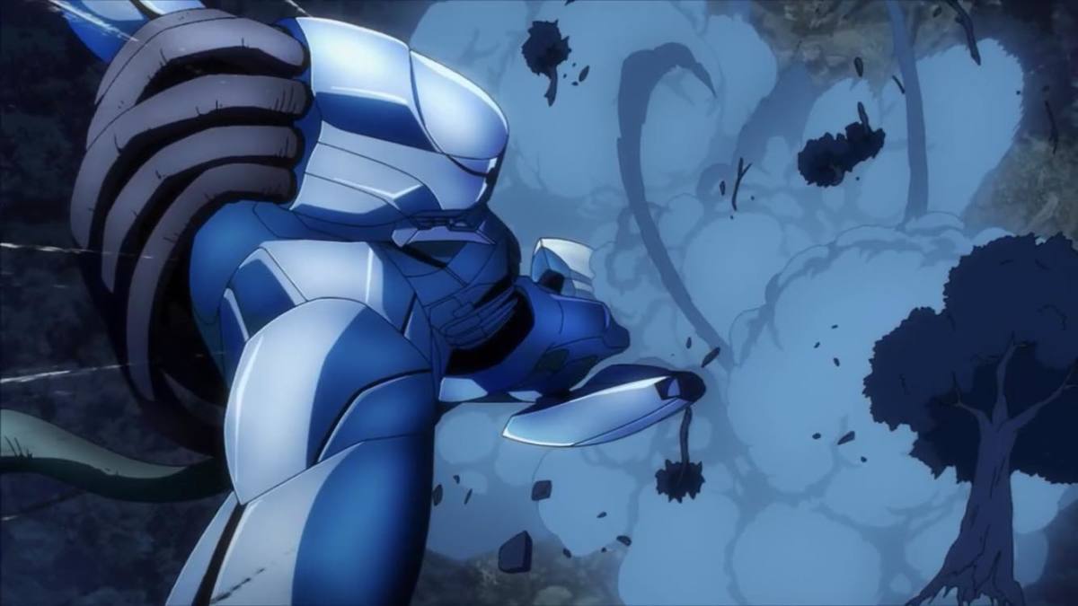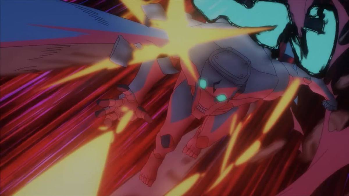 戰鬥的畫面究極機械丸以巨大的身軀對抗渺小的真人,整個畫面瞬間有機人番的韻味,搭配這段 MAPPA 所使用的 BGM 也很有《新世紀福音戰士》常用的編曲節奏,整個戰鬥豎立起緊張的氛圍。