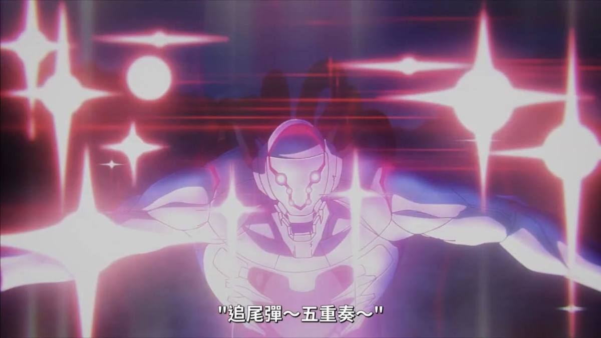 機械丸使出追尾彈的畫面,這個閃光效果也很像是《新世紀福音戰士》中使徒死亡的樣貌。