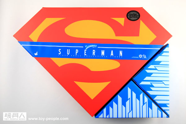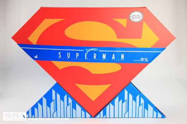 ↓ Hot Toys MMS 152 Superman 開箱!非常大的一個包裝盒,使用超人的經典符號“S”,還附上了兩個連在一塊的藍色紙盒。