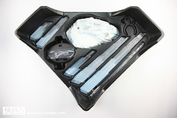 ↓ 水晶地台的零件,透明的棒子與黑色的夾子可以讓超人擺出飛行/飄浮在空中的姿勢,夾子上附有泡棉防止夾傷本體,超貼心!