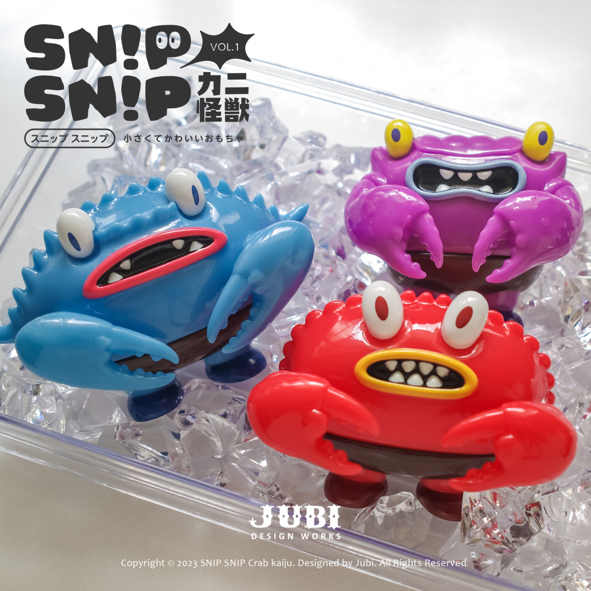 台灣本土玩具設計師 JUBI,繼「超蟹怪獸」、「鉗君」等人氣作品後,這次再度以帥氣又神祕的甲殼類為主角,推出最新的【Snip Snip カニ怪獣】系列軟膠,首波帶來「麵包蟹 / 藍蟹 / 吸血鬼蟹」三款角色(一套不單售),目前已開放台灣先行預購!