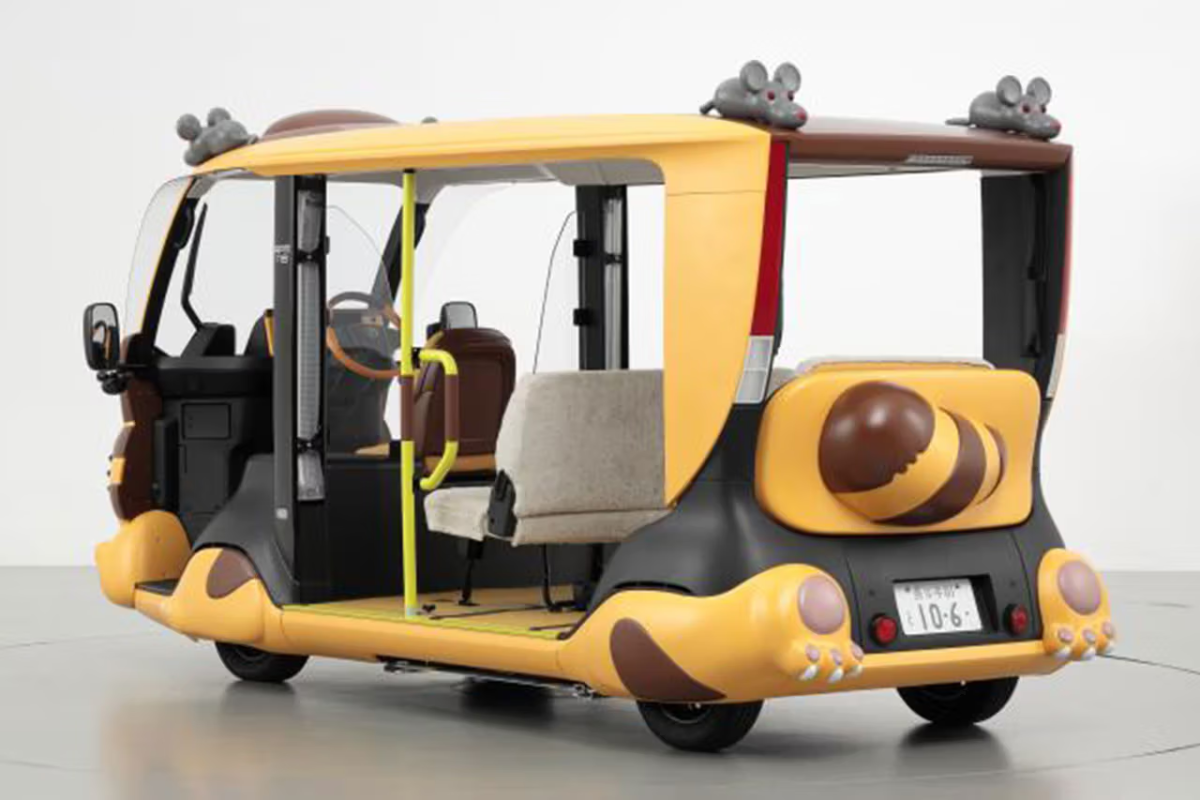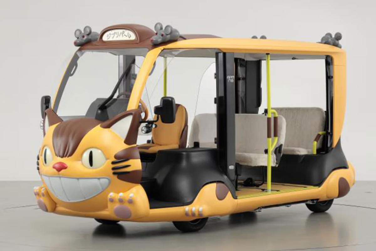 吉卜力公園所使用的「龍貓遊園公車」,是以車廠 TOYOTA 的「APM(Accessible People Mover)」 低速電動車型為基礎改裝而成,外型以動畫裡的龍貓公車為基礎,車頭上方還有吉卜力公園的字樣,預計會在園區內提供遊客遊覽各區域,體驗不同的遊園樂趣。