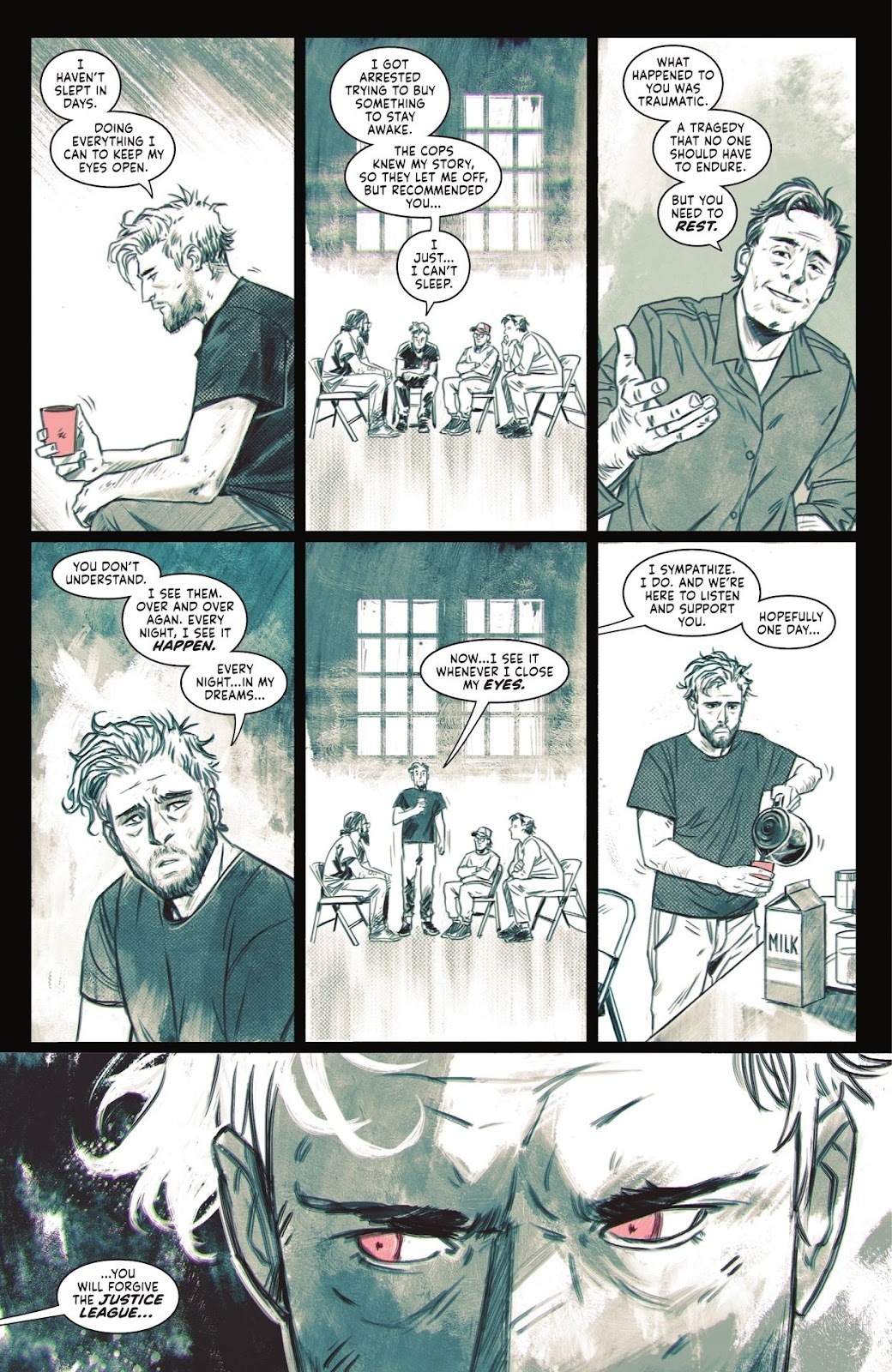 同樣在倖存者互助會當中的其他人試著安慰他,並表示也許他終有一天能夠原諒正義聯盟,這句話卻讓他抓狂,開始屠殺在場眾人。