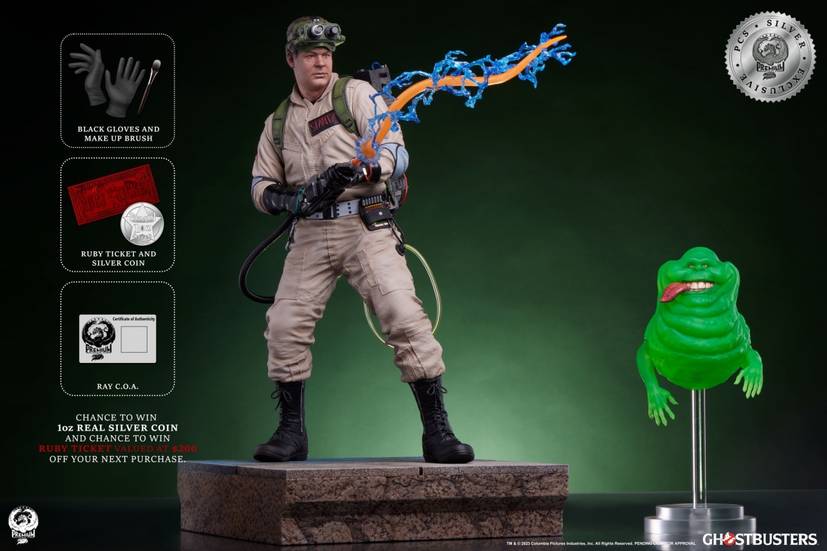 本作高約 48 公分,將全副武裝、手握質子槍的「雷」精美立體化,從演員「丹·艾克洛德 (Dan Aykroyd) 」年輕時的面部輪廓、工作服的皺褶、「STANZ」的名牌,到手中質子槍(粒子發射器)、身後質子背包的機構細節都施以高度造型力,並附有一個配置護目鏡的替換頭雕,底座部分延續了前作採用岩石質感呈現,平整的路面能跟先前的伊根搭配展示。