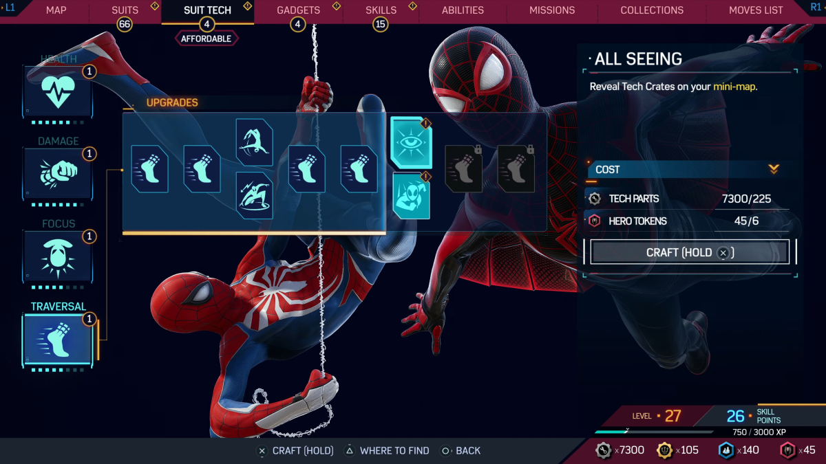 服裝方面也如同以往,解鎖越多的任務,就能得到更多蜘蛛戰服的選項與技能,並且透過全新的戰服科技來進行系統升級,獲得更完整、更強大的力量。