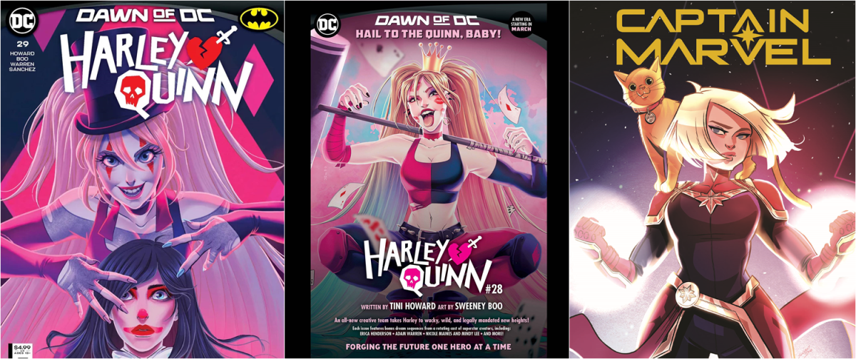 而除了邁爾斯的這套戰服外,Sweeney Boo也多次為Marvel Comics、DC Comics,以及《Star Trek》...等漫畫進行繪製,像是2023年發行的《Harley Quinn (2021-) 》#28~31、《The Joker (2021-)》#5~7、#15,以及《Captain Marvel: Game On (Trade Paperback)》...等。