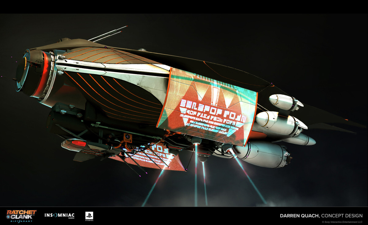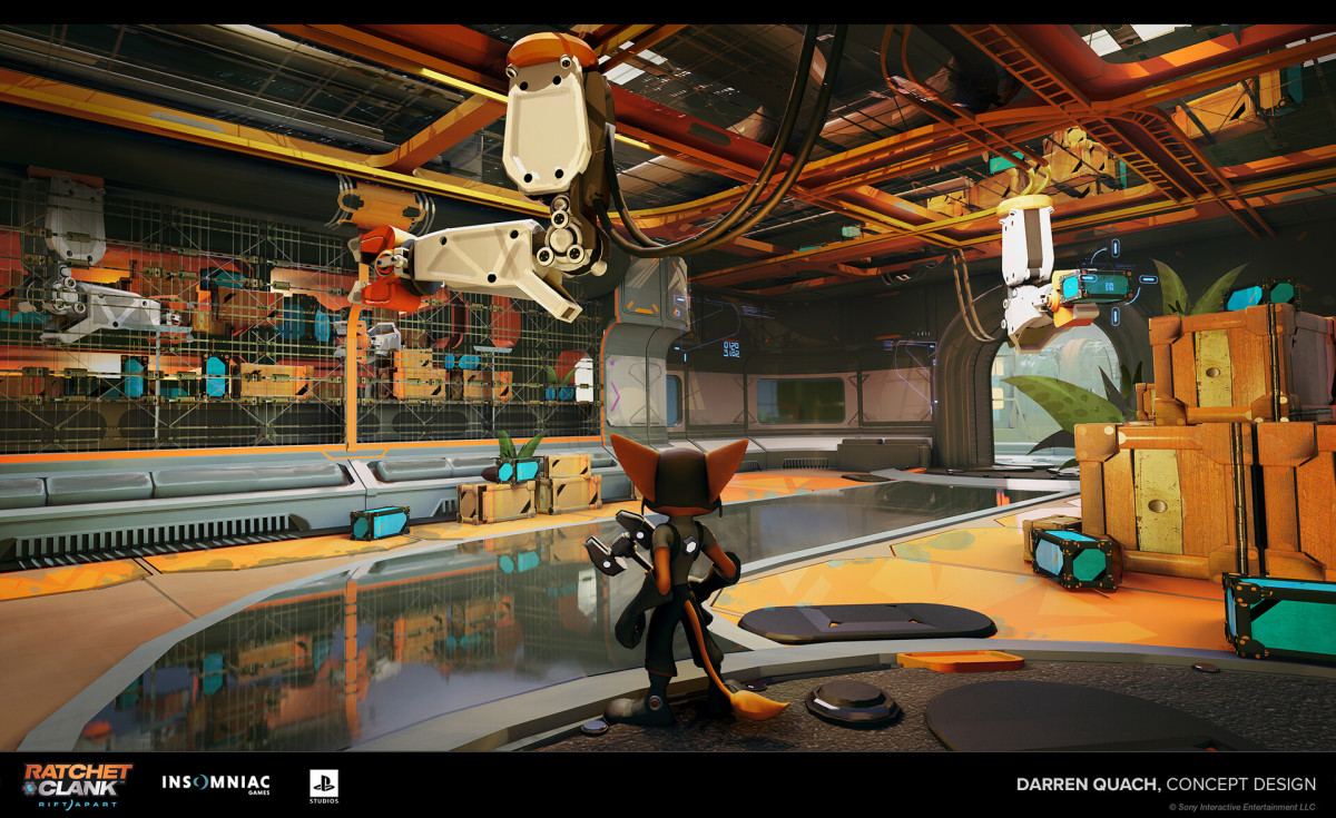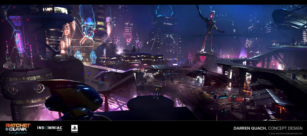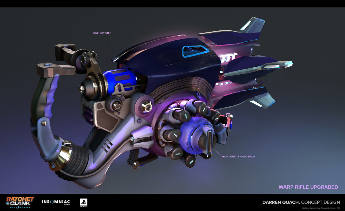 而Darren Quach則是也為Insomniac Games另一IP《拉捷特與克拉克:時空裂縫》(Ratchet & Clank: Rift Apart),設計專有武器與載具,可以看到Quach所特有的機甲風格,也明顯成為此次為《漫威蜘蛛人2》彼得·帕克戰服的一部分元素。
