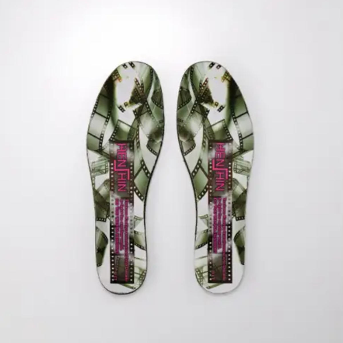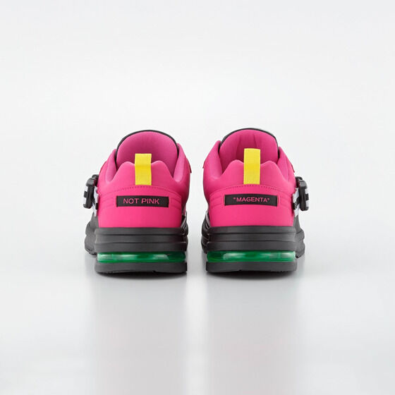兩腳後跟各寫著「NOT PINK」、「MAGENTA」。