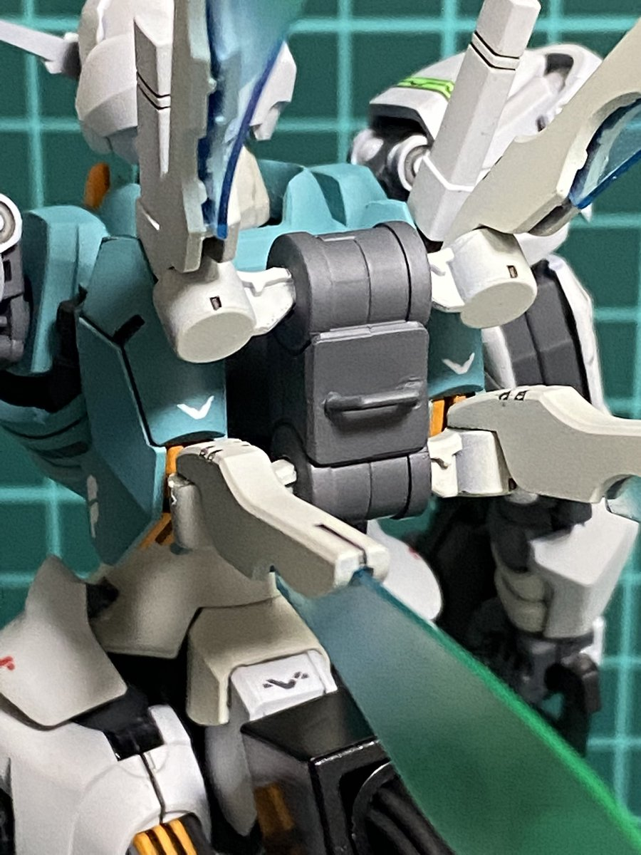 腿部、肩甲處都經過修改過,讓整個線條更有妖精的感覺,更修長的身軀讓整個機體彷彿有九頭身般。