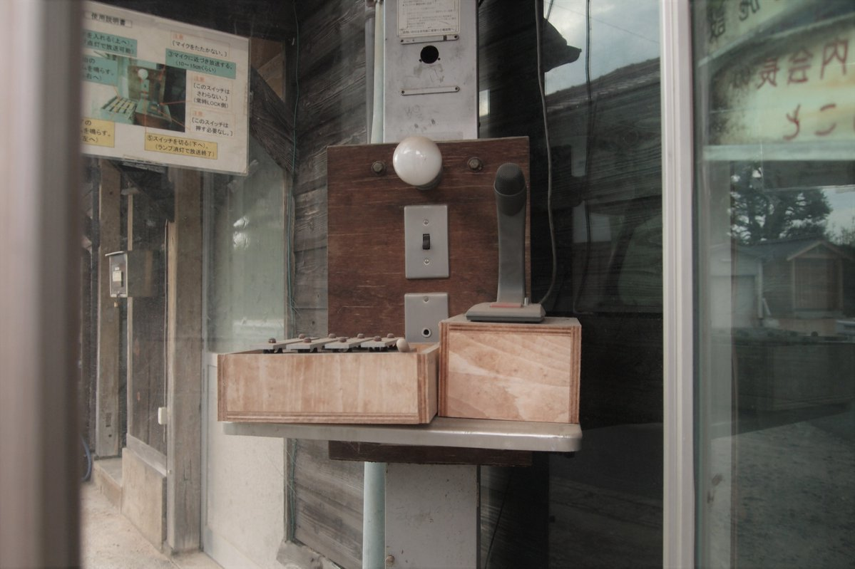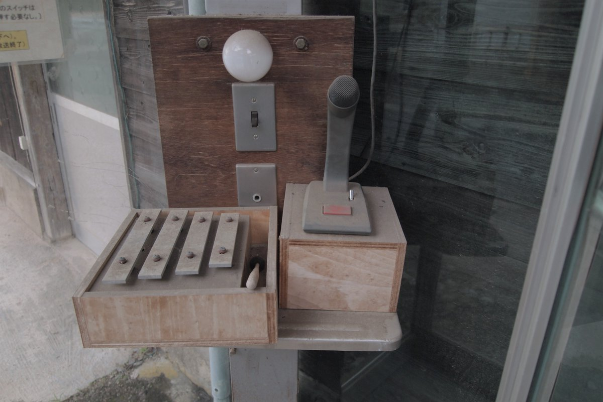 從設施外觀來看,的確很像是電話亭,不過走進去的設施看起來非常古老,感覺已經是昭和年代的老物,旁邊像是鐵琴的東西也不知道是什麼功用。