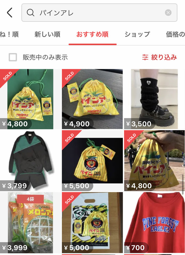 不只是這些印刷物,連糖果品牌 PINE 推出的「阪神タイガース パインアレ」 糖果,這些周邊也被轉賣廚放到網拍高價轉賣,由於糖果一上架就被掃光,官方也只好出來宣布這些轉賣的與公司無關係,很難過出現這樣的現象。