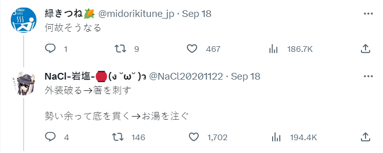 不過最近日本 X 上有位推主成為話題,因為他發了一張用「逆方向」泡日清杯麵的照片,被日網友喻為是「超越日清的男人」,這樣的作法也讓不少人躍躍欲試。
