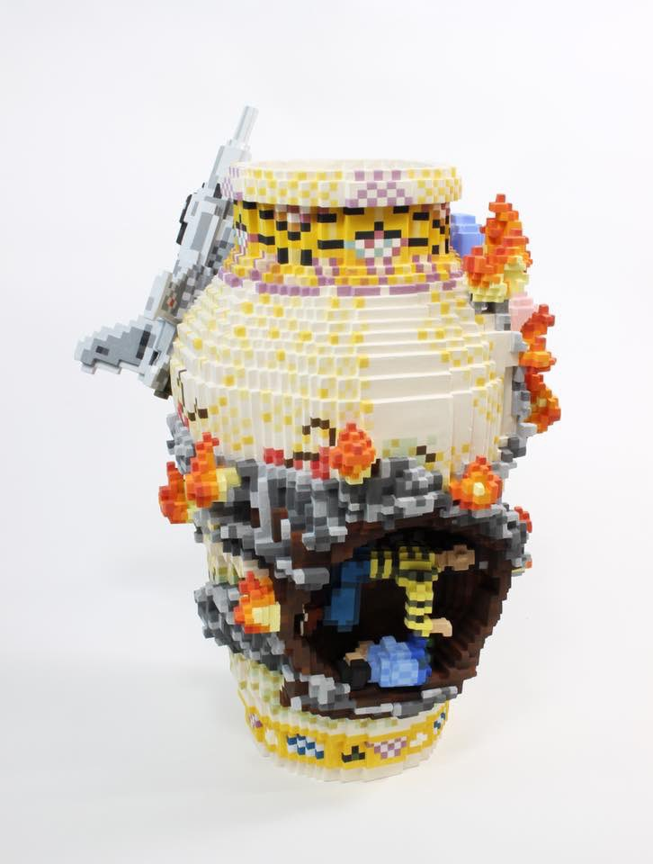 這個被網友貼出的展覽品吸引不少人關注,畢竟很少像素藝術會用陶作的方式呈現,除了非常出色的像素效果外,溶解劃破的創意也被網友讚賞非常具有獨特性。
