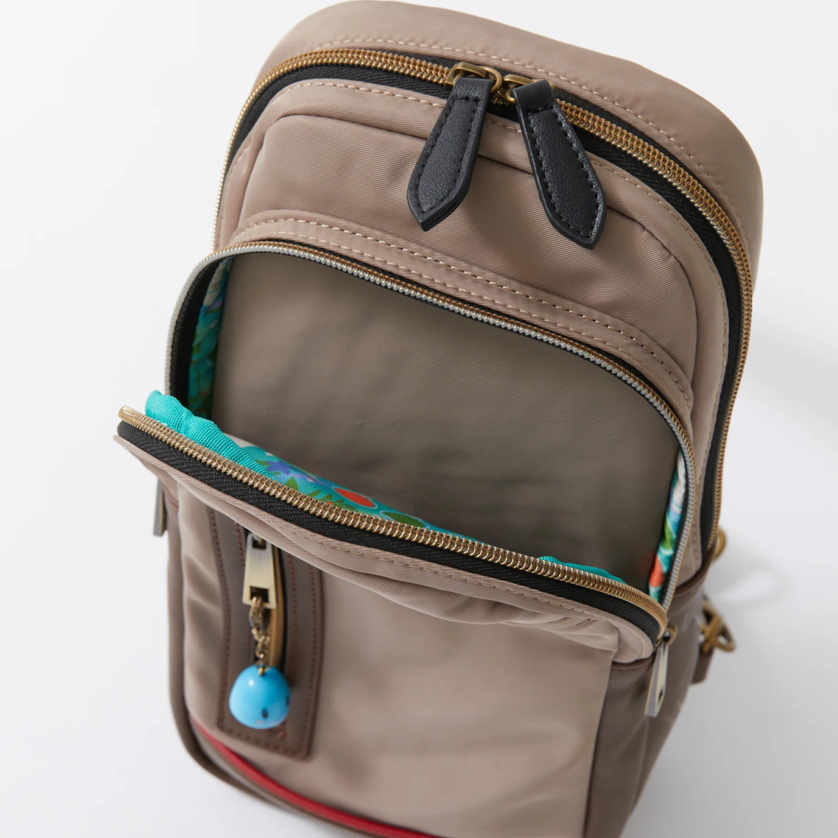 同樣採用萊莎的服裝為靈感設計,看似小小的確有不錯的收納空間,皮面與尼龍帆布的搭配給出不錯的質感。