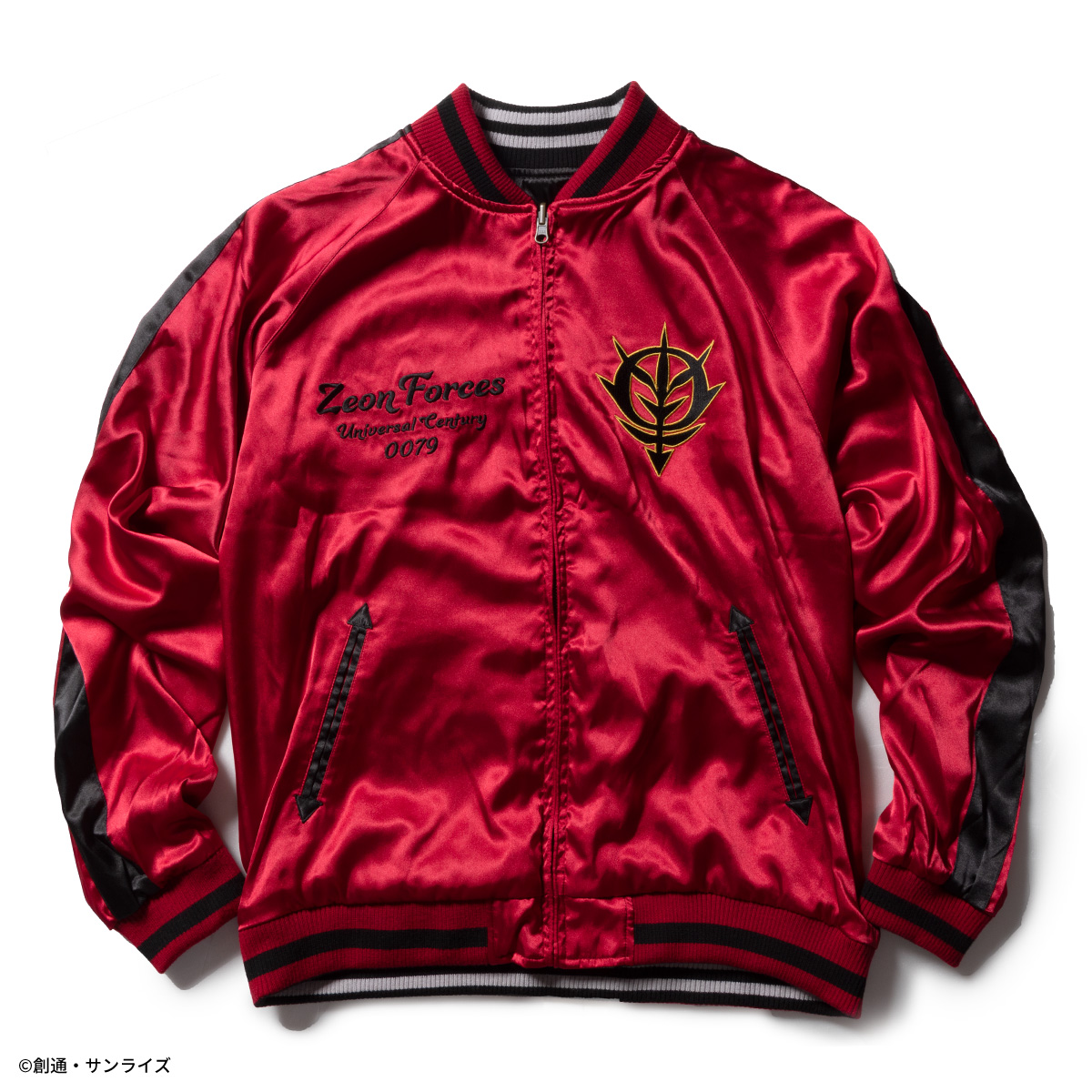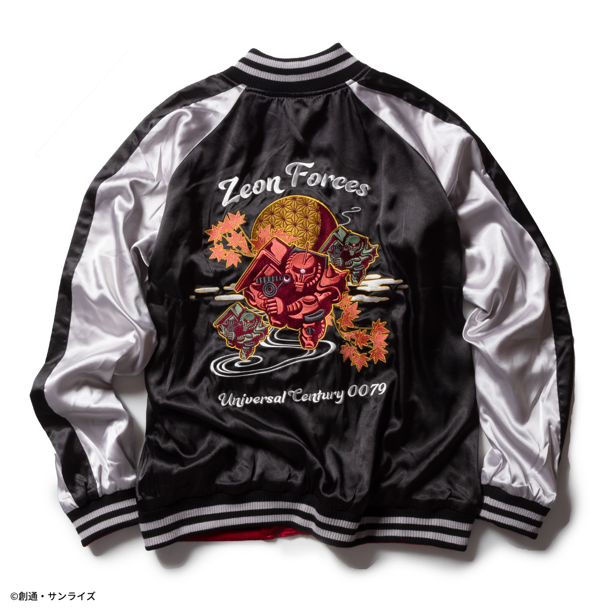 同樣採雙面穿設計,一面有著大面積的刺繡,為紅色薩克與日式和風插圖的結合;翻轉過來雖少了背面的刺繡,卻使用非常顯眼的亮紅色展現完全不同的面貌,一樣保有正面的吉翁軍徽與 Zeon Forces & 宇宙紀元 0079 字樣。