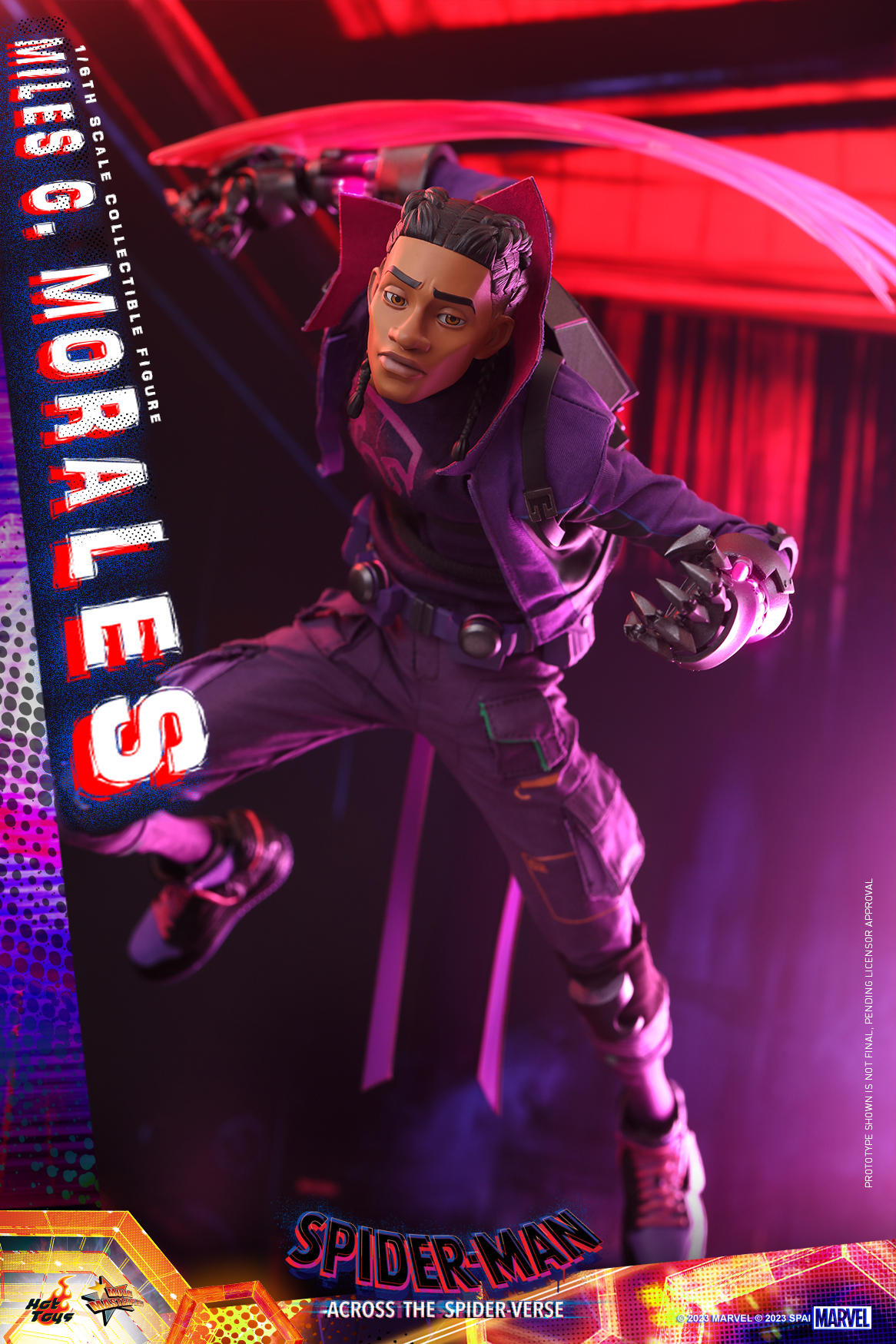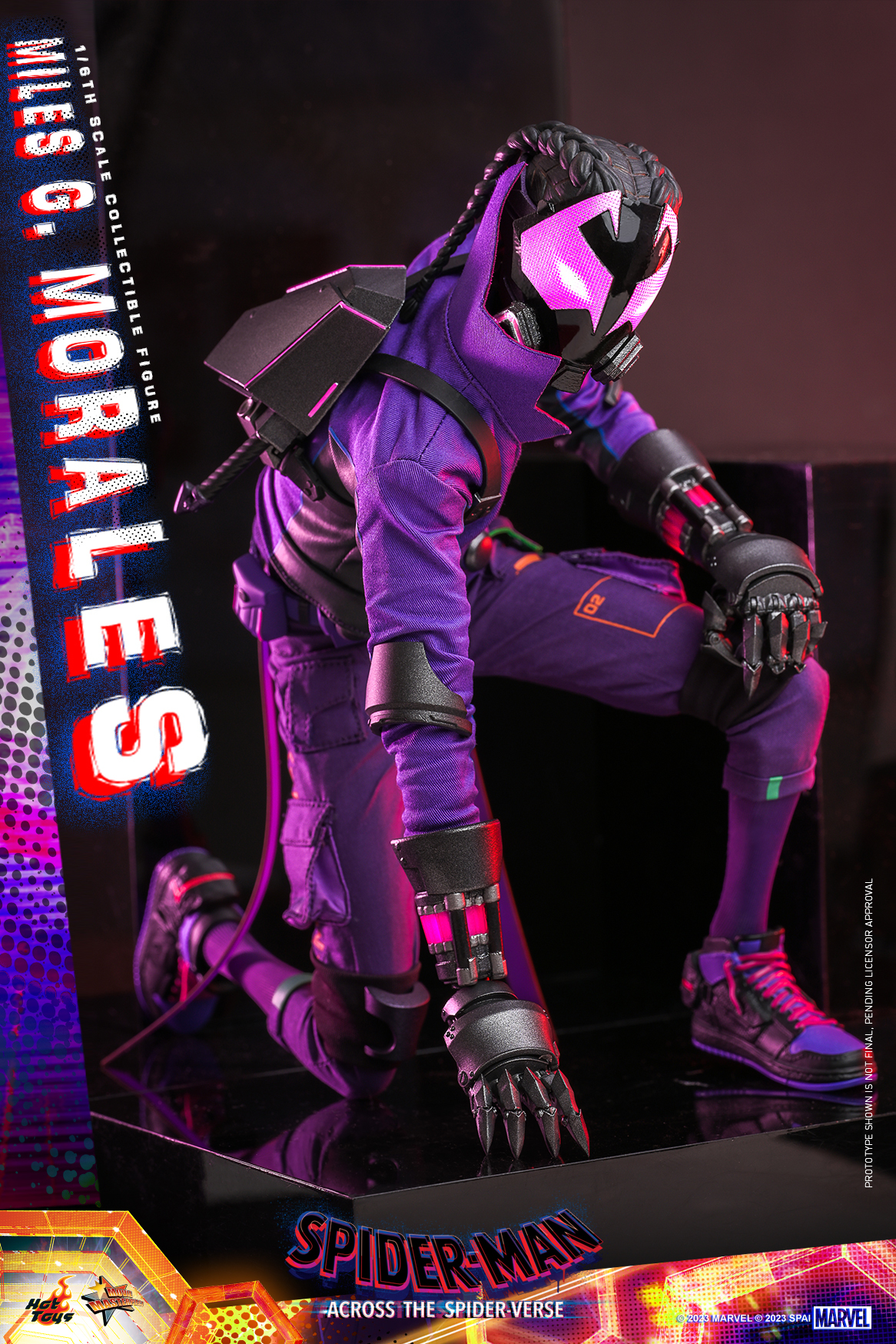 在《蜘蛛人:穿越新宇宙》末段,「邁爾斯」被傳送到咬傷自己輻射蜘蛛所來自的 42 號宇宙(Earth-42),並且遇見了在這個世界中還存活著的亞倫叔叔(Uncle Aaron)以及化身為潛行者(Prowler)的自己「邁爾斯·G·摩拉斯」;本作高約 29 公分、全身可動來到 30 處,將紫、黑配色徘徊者服飾的尖角立領、帶有利爪的機械手前臂、裝備背包、中筒球鞋......等各處細節考究還原,除了具備 LED 發光功能的面罩頭雕之外,還有髒辮造型且搭載可動眼技術的裸顏頭雕,表情真的有夠兇!