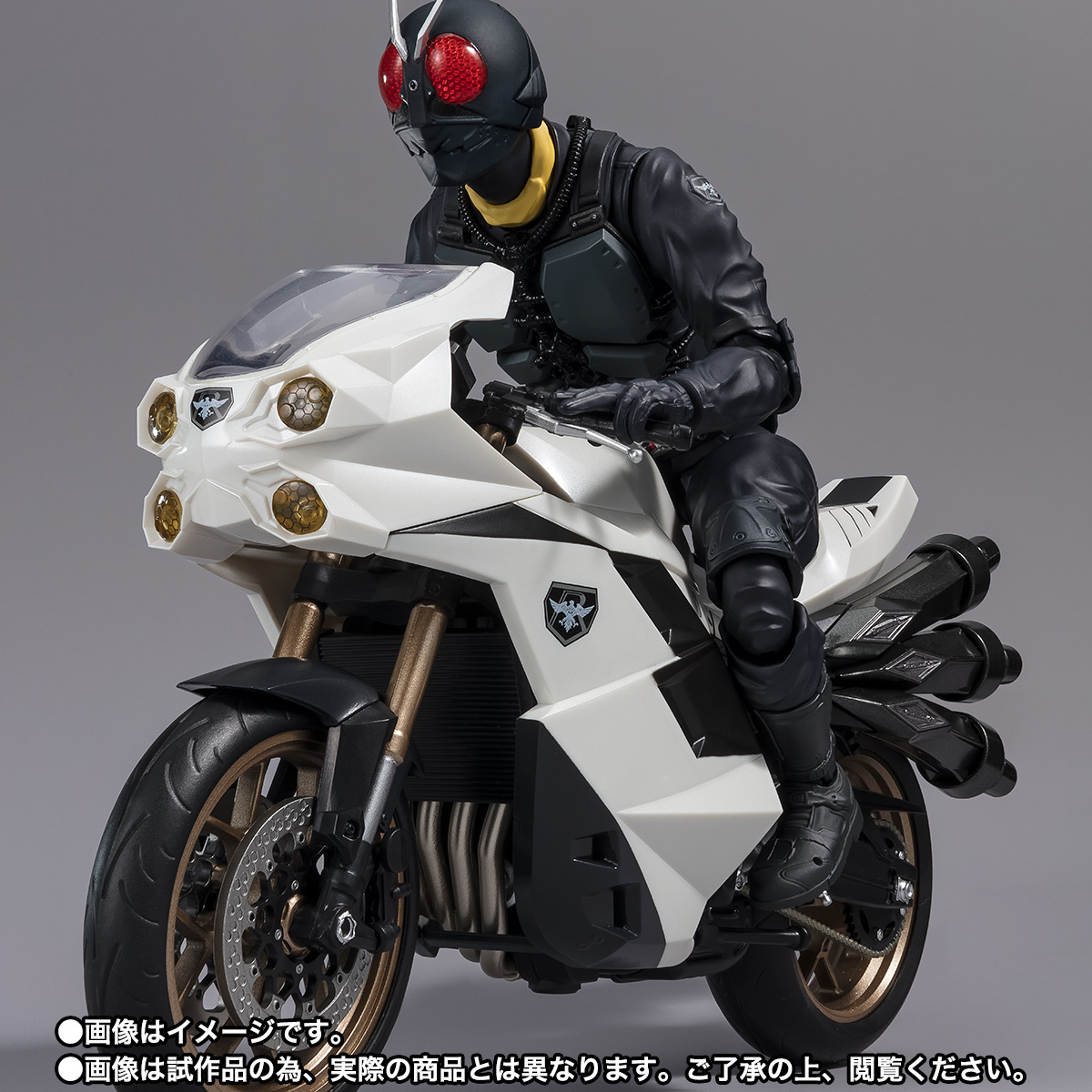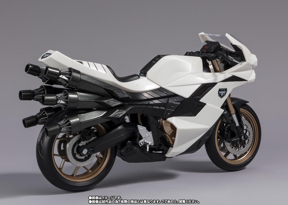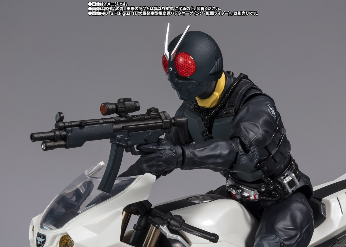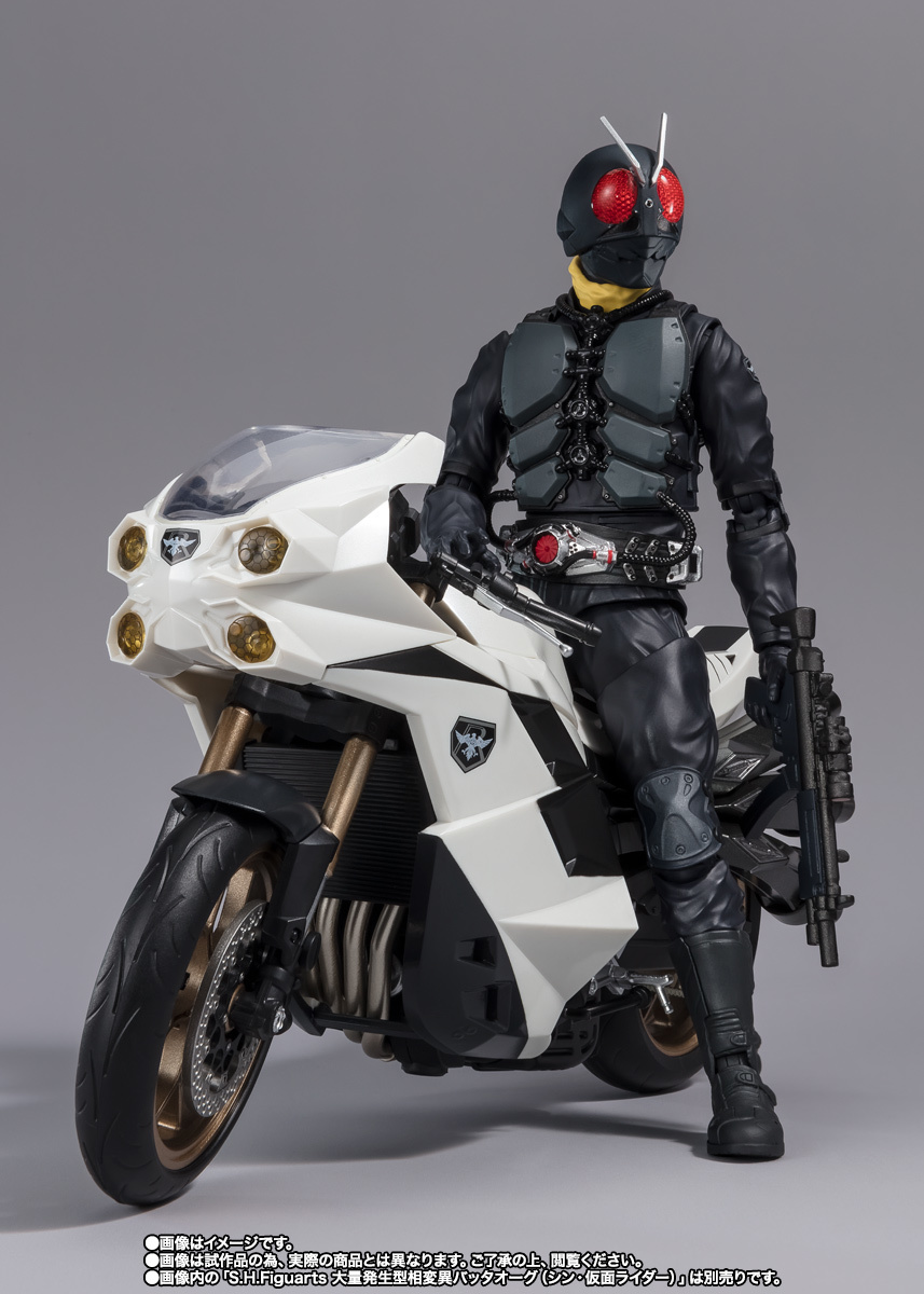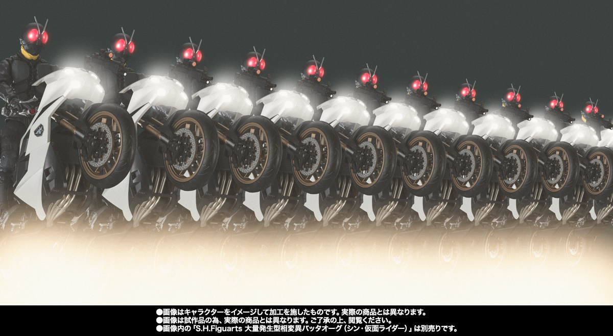 「S.H.Figuarts 大量發生型相變異蝗蟲怪人旋風號 (新・假面騎士)」,以電影設定為基礎,忠實再現了劇中的色彩與造型。四個車頭燈和擋風玻璃使用了透明零件呈現。與另售的「大量發生型相變異蝗蟲怪人」一起賞玩,可以重現劇中的機器騎乘狀態!