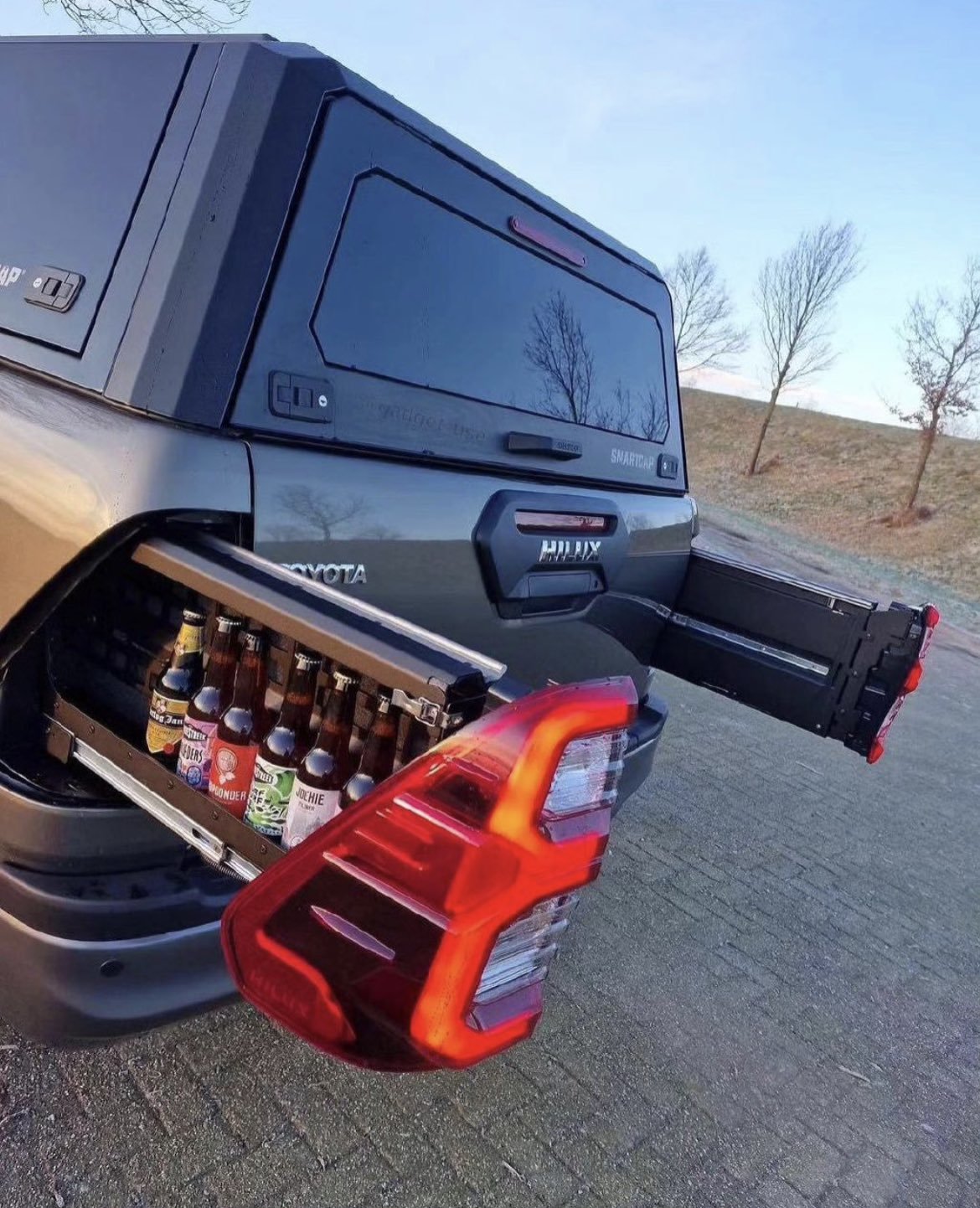 各位可以看到在後車廂的部分,變成了可以拉開,並且放置多罐啤酒的裝置,雖然看起來...這不像是能夠冷藏成冰啤酒,痛快暢飲的改造,但至少它可以裝上好幾罐帶著走沒問題w