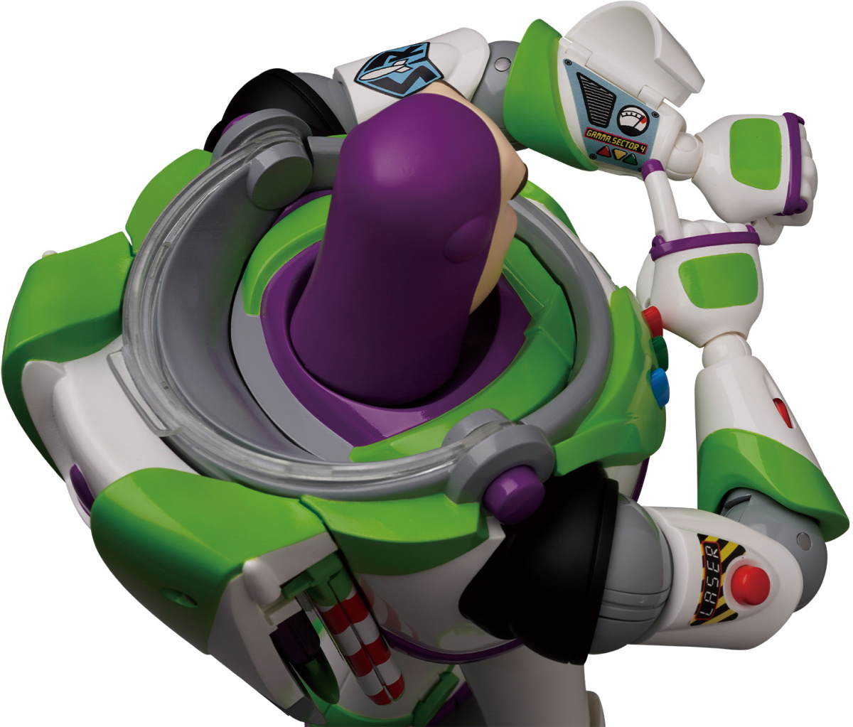 主打將《玩具總動員》裡的人氣玩具之一「巴斯光年」以等身比例徹底再現的「終極巴斯光年」高度來到 28 公分,除了會附上四種生動的表情零件之外,還搭載能夠讓可玩性再提升的可動眼,背部飛翼可以手動展開、位於左手前臂的通訊器掀蓋也能開啟,考究還原劇中設定,雖然沒有明確表示可動關節數量,但可以利用雙肩的拉伸機構進一步延展雙臂的可動範圍,達成更加大膽、活躍的姿態!另外,頭部的透明罩也有三種樣式可以選擇,整體看起來真的非常讚!