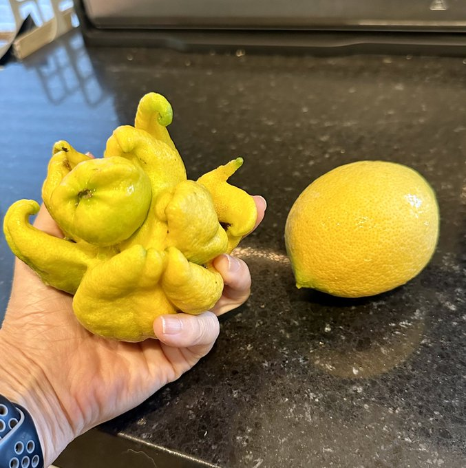 看過特意造型的西瓜、蘋果、香蕉,也有過不少長相奇葩的蔬果,但長成這樣超脫框架、感覺蠢蠢欲動的「檸檬」還真是第一次見。