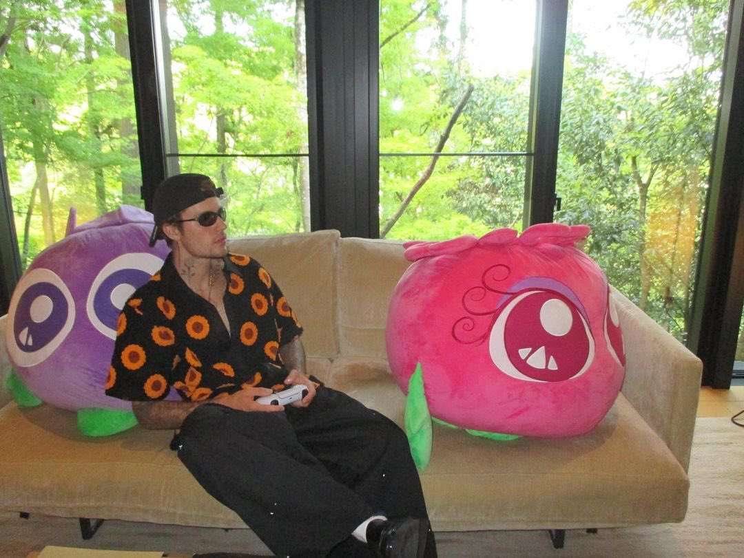 上週小賈斯汀偕同妻子海莉一同造訪日本,回國後在IG貼出了紀念照,第一張就可以看到他從日本帶回來的兩隻超大紀念品娃娃,一紫一粉,有點像花苞或果實的造型,台灣的朋友乍看之下可能不太確定是什麼?