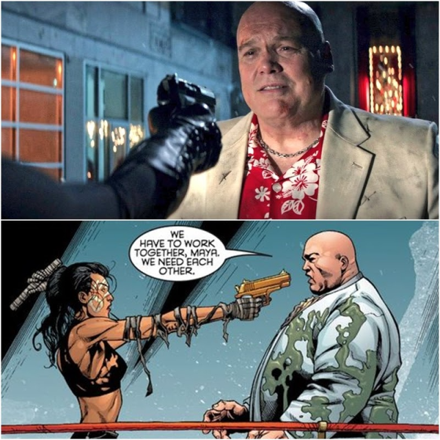 在2021年《鷹眼》(Hawkeye)影集中登場的原住民喑啞英雄「迴聲」瑪雅羅培茲(Maya Lopez)是紐約市鼎鼎大名犯罪頭目「金霸王」的養女。而兩人之間的愛恨情仇,將在前者明年一月即將到來的獨立影集《迴聲》(Echo)中延續下去。
