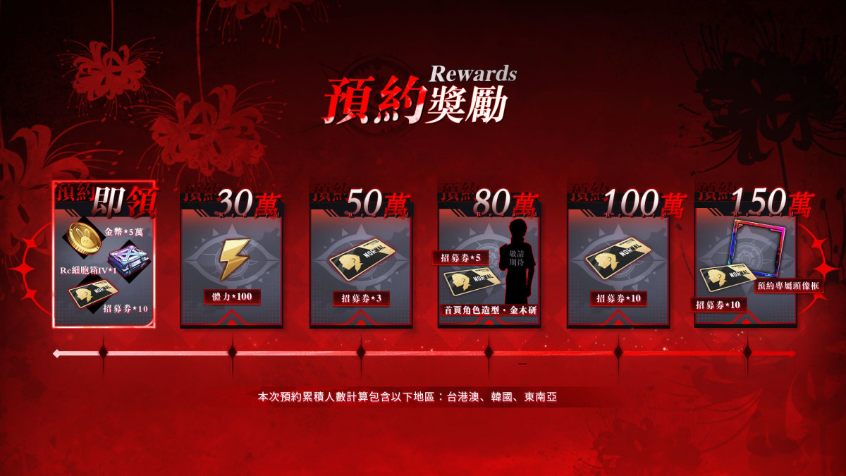官網還同步開放了事前預約活動,是獲得遊戲內道具「金幣」、「Rc細胞」、「招募券」等豪華獎勵的大好機會!活動中根據預約人數,將會贈送不同的階段式獎勵,有興趣的玩家趕快前往預約獲取豐富獎勵吧!