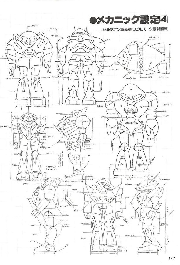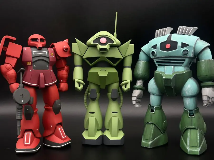 或許年代久遠各位可能印象不深,《機動戰士鋼彈》26話中,地球聯邦軍雷比爾將軍的簡報中,螢幕上出現的「吉翁軍開發的新MS」,上頭有數台機體,而推主則參考公式說明書的外觀來製作。